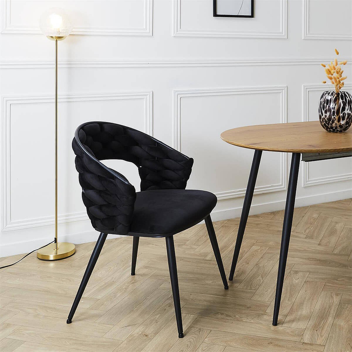 OSCAR - Lot de 2 Chaises en Velours Noir Pieds Métal Noir
