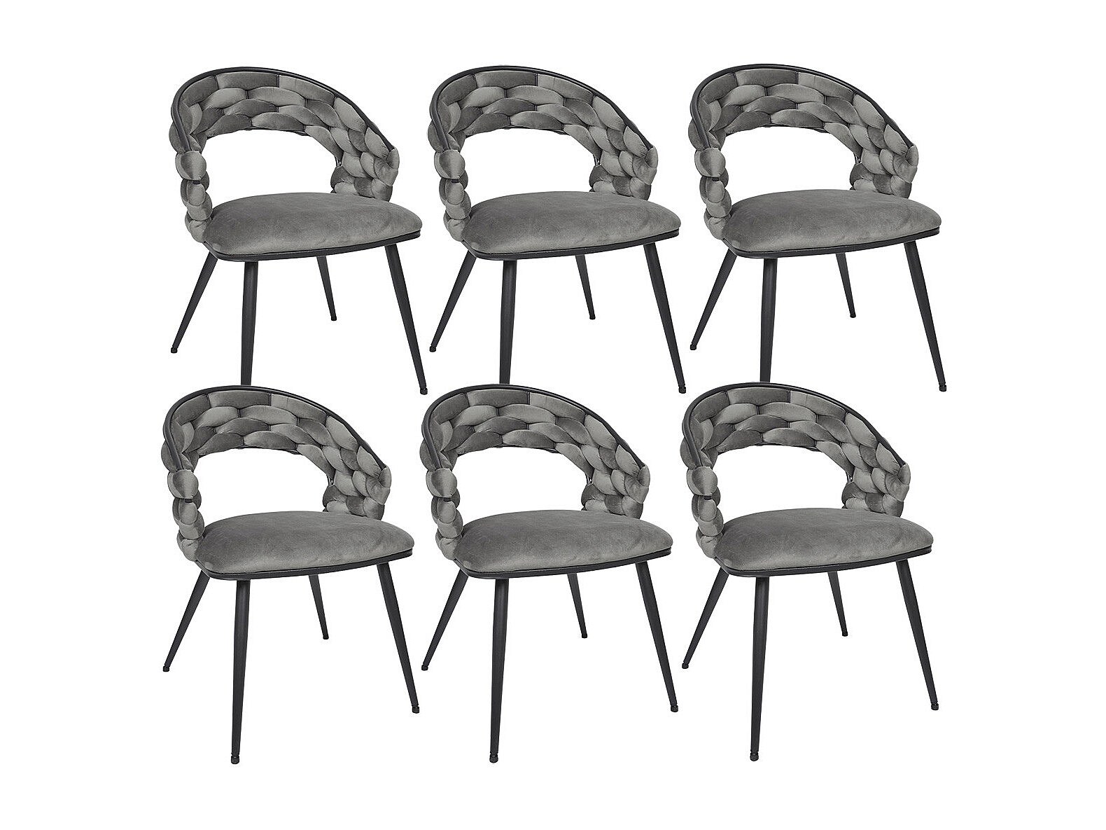 OSCAR - Lot de 6 Chaises en Velours Gris Pieds Métal Noir