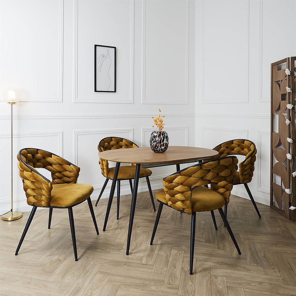 OSCAR - Lot de 6 Chaises en Velours Jaune Moutarde Pieds Métal Noir