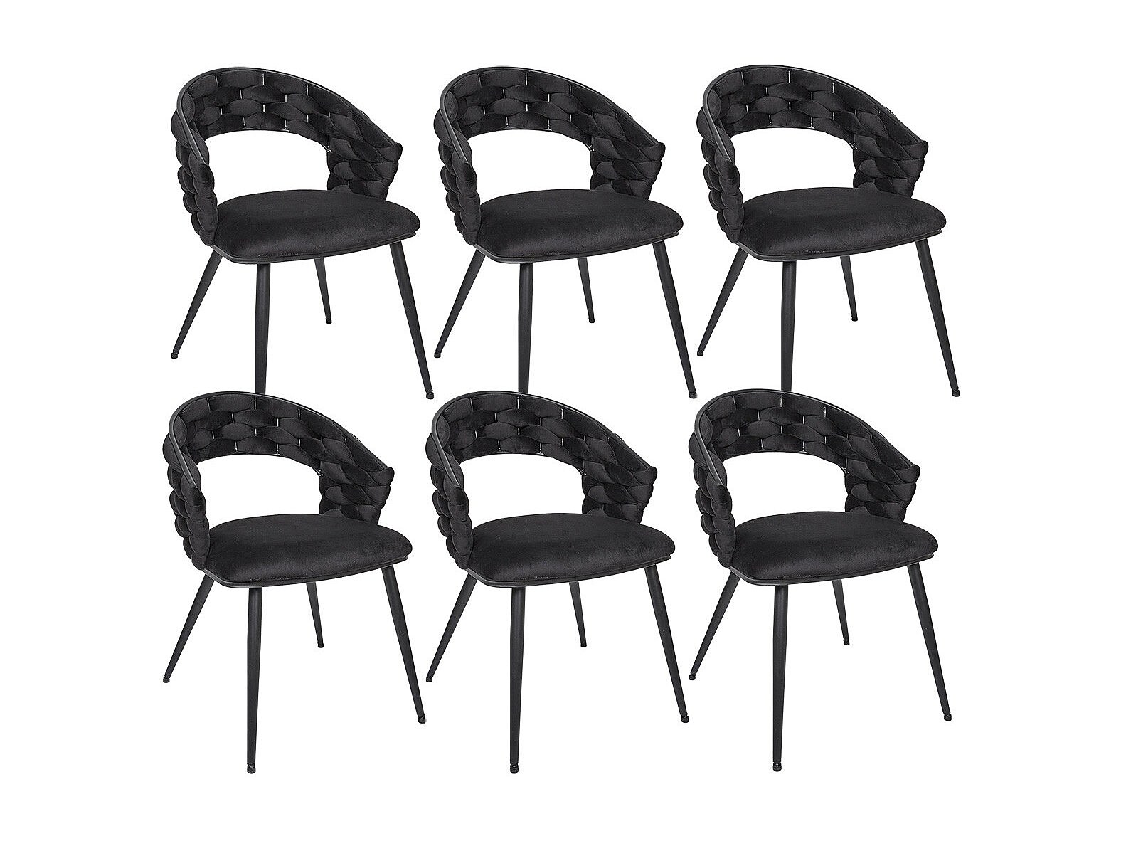 OSCAR - Lot de 6 Chaises en Velours Noir Pieds Métal Noir