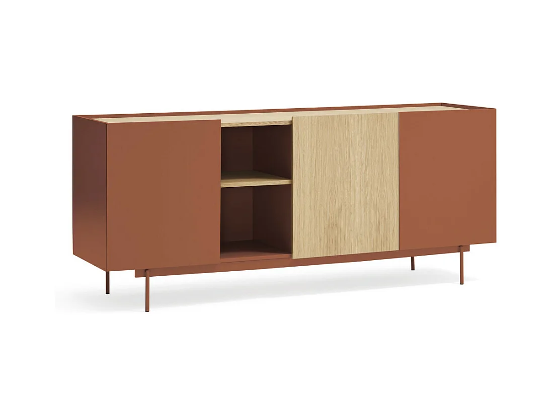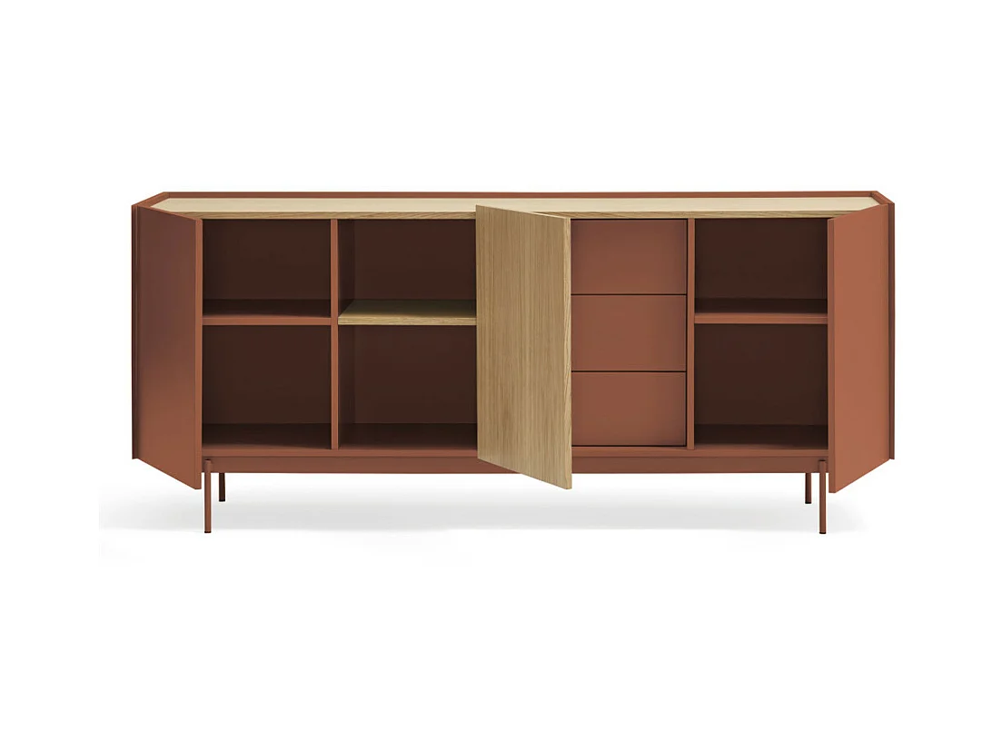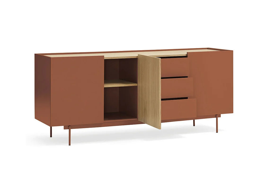 Otto - Buffet 3 portes, 3 tiroirs en bois L180cm - Rouge brique
