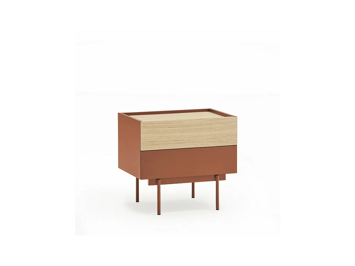 Otto - Table de chevet 2 tiroirs en bois - Rouge brique