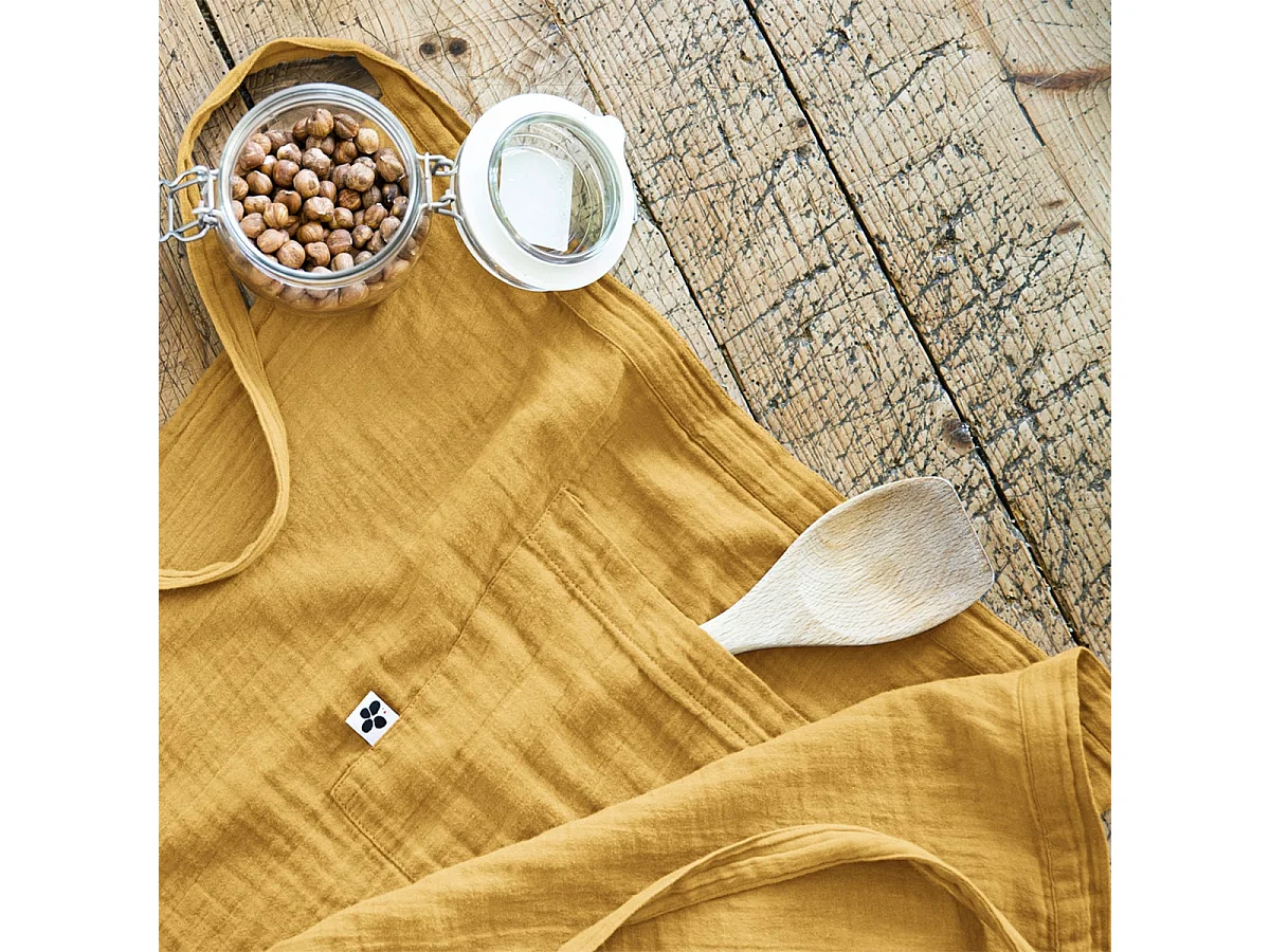 Tablier de cuisine en coton 60x80 cm PANAMA moutarde, par Soleil d'Ocre