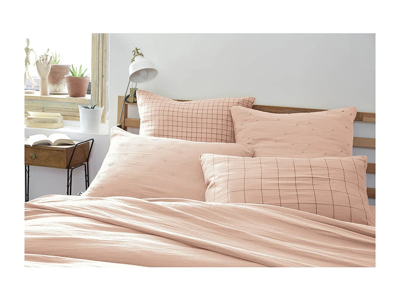 Taie d'oreiller Tissé-teint petits carreaux Déco "Gaïa Mix" 60 x 60 cm & 50 x 70 cm "Gaze de Coton"