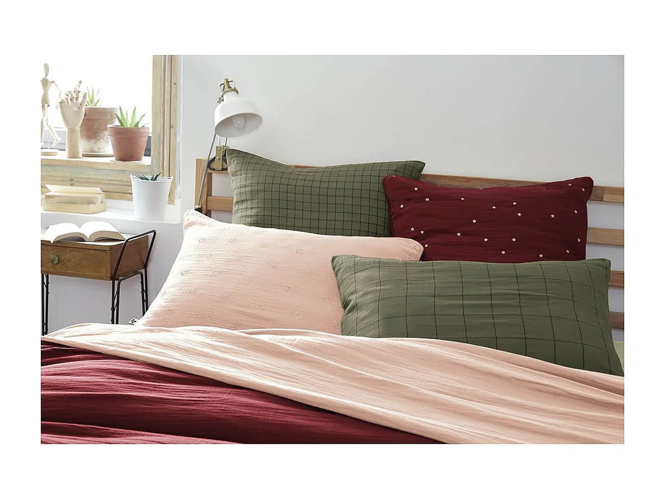 Taie d'oreiller gaze de coton imprimé vichy 50x70 Vert