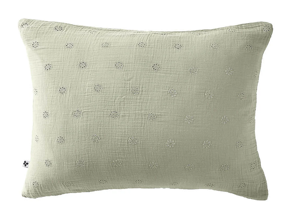 OUREA MOTIF - Taie d'Oreiller 50x70cm Gaze de Coton Vert d'Eau à Fleurs Ajourées