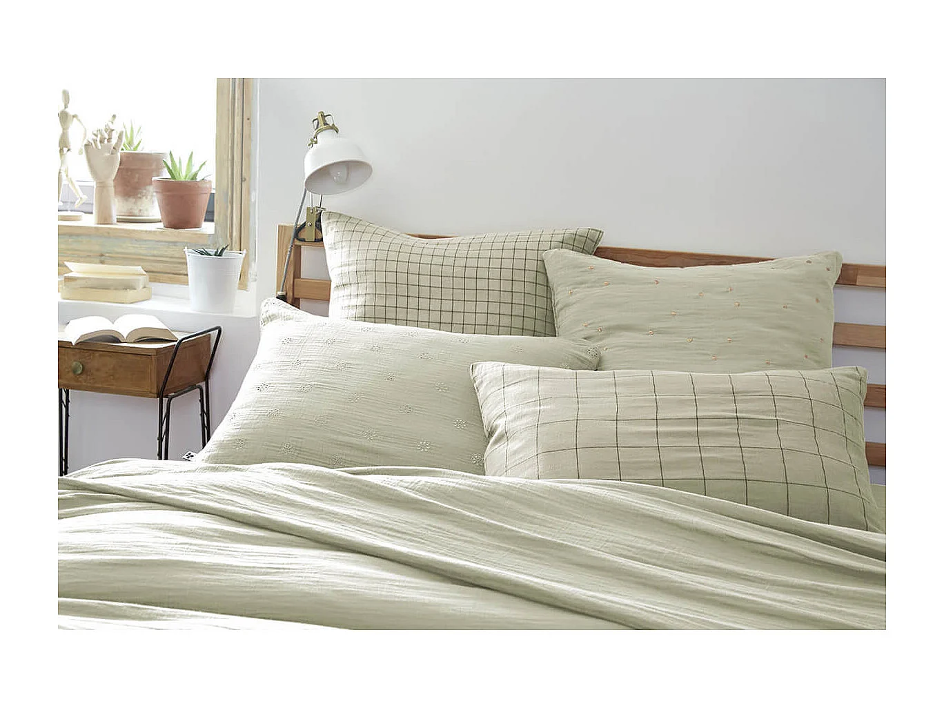 Taie d'oreiller Tissé-teint petits carreaux Déco "Gaïa Mix" 60 x 60 cm & 50 x 70 cm "Gaze de Coton"