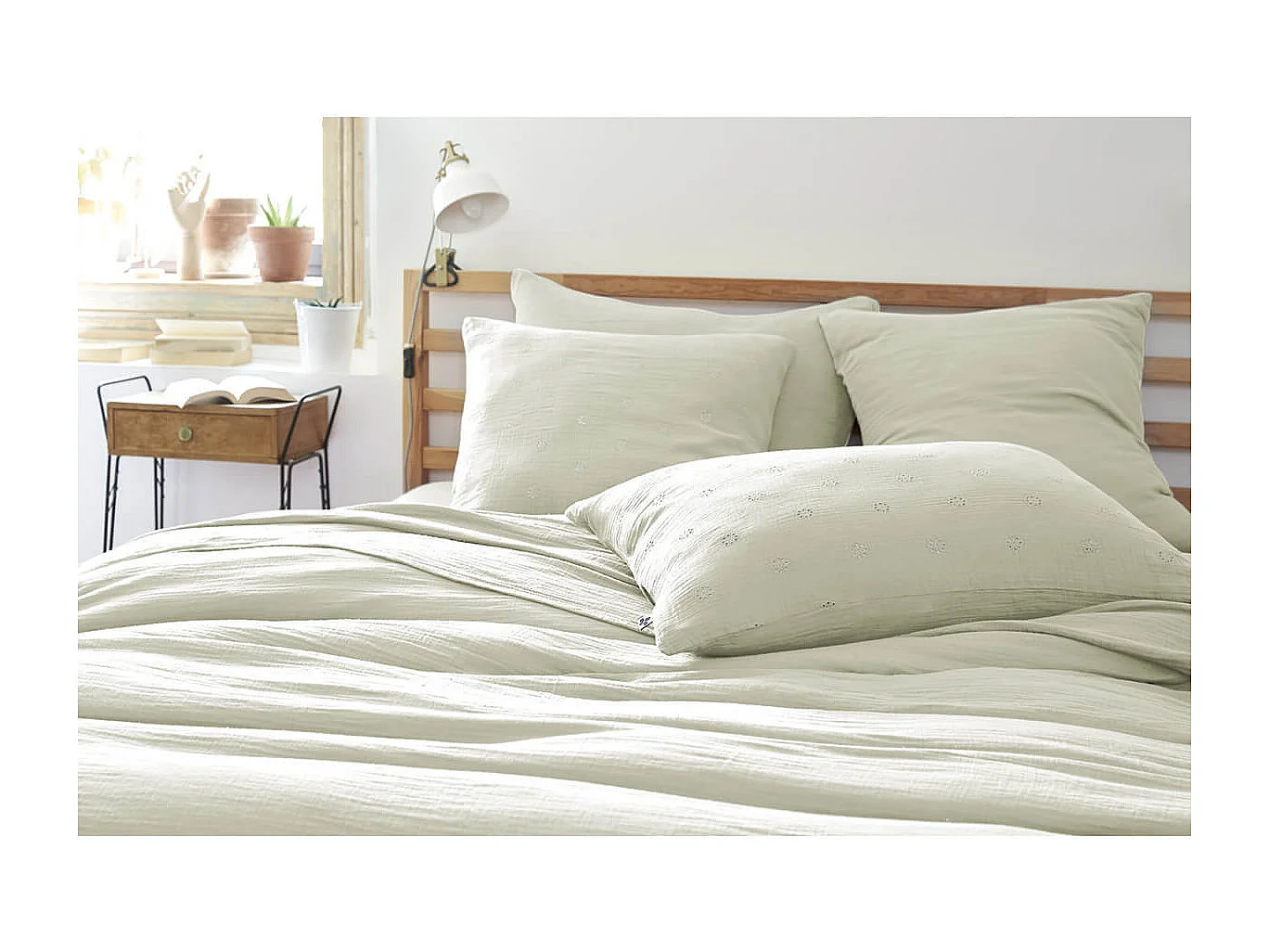 Parure housse de couette et taies d'oreiller gaze de coton céladon