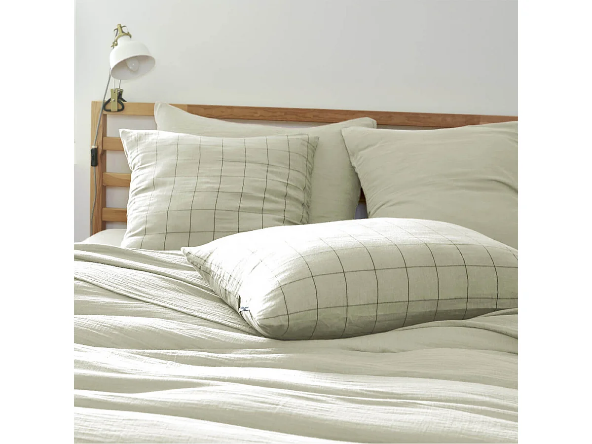 Taie d'oreiller à carreaux double gaze de coton kaki 50x70