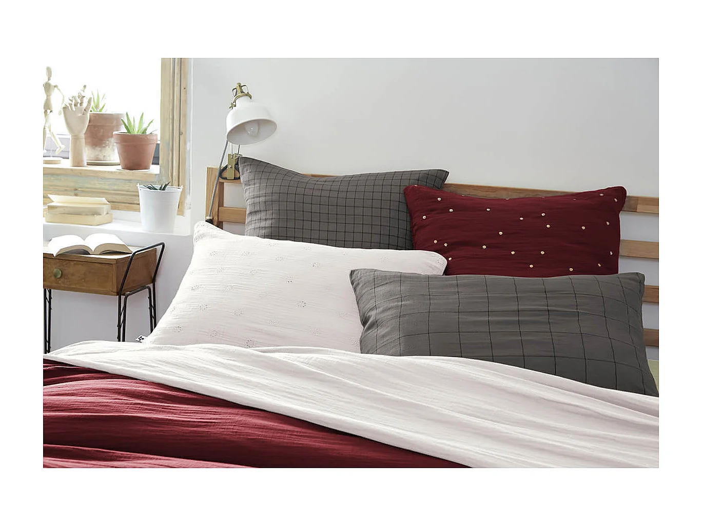 Taie d'oreiller Tissé-teint petits carreaux Déco "Gaïa Mix" 60 x 60 cm & 50 x 70 cm "Gaze de Coton"