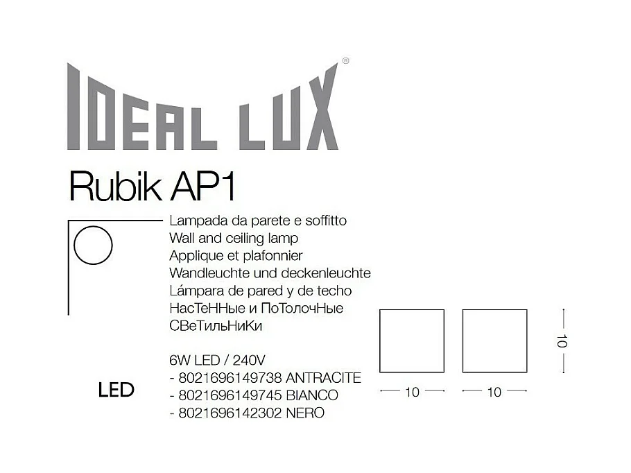 Ideal Lux Rubik Applique murale d'extérieur à 1 lumière LED noire IP44