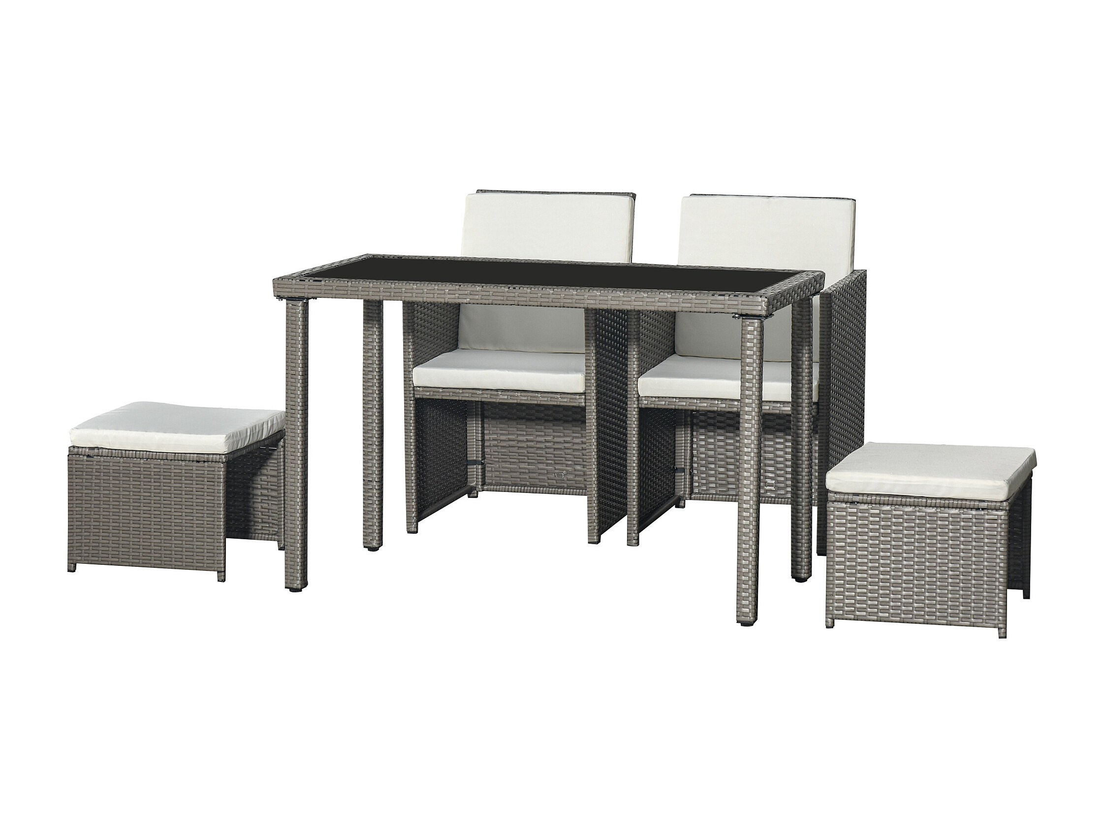 Outsunny Ensemble salon de jardin encastrable 2 fauteuils monoblocs + 2 tabourets + table basse résine tressée coussins déhoussables crème gris