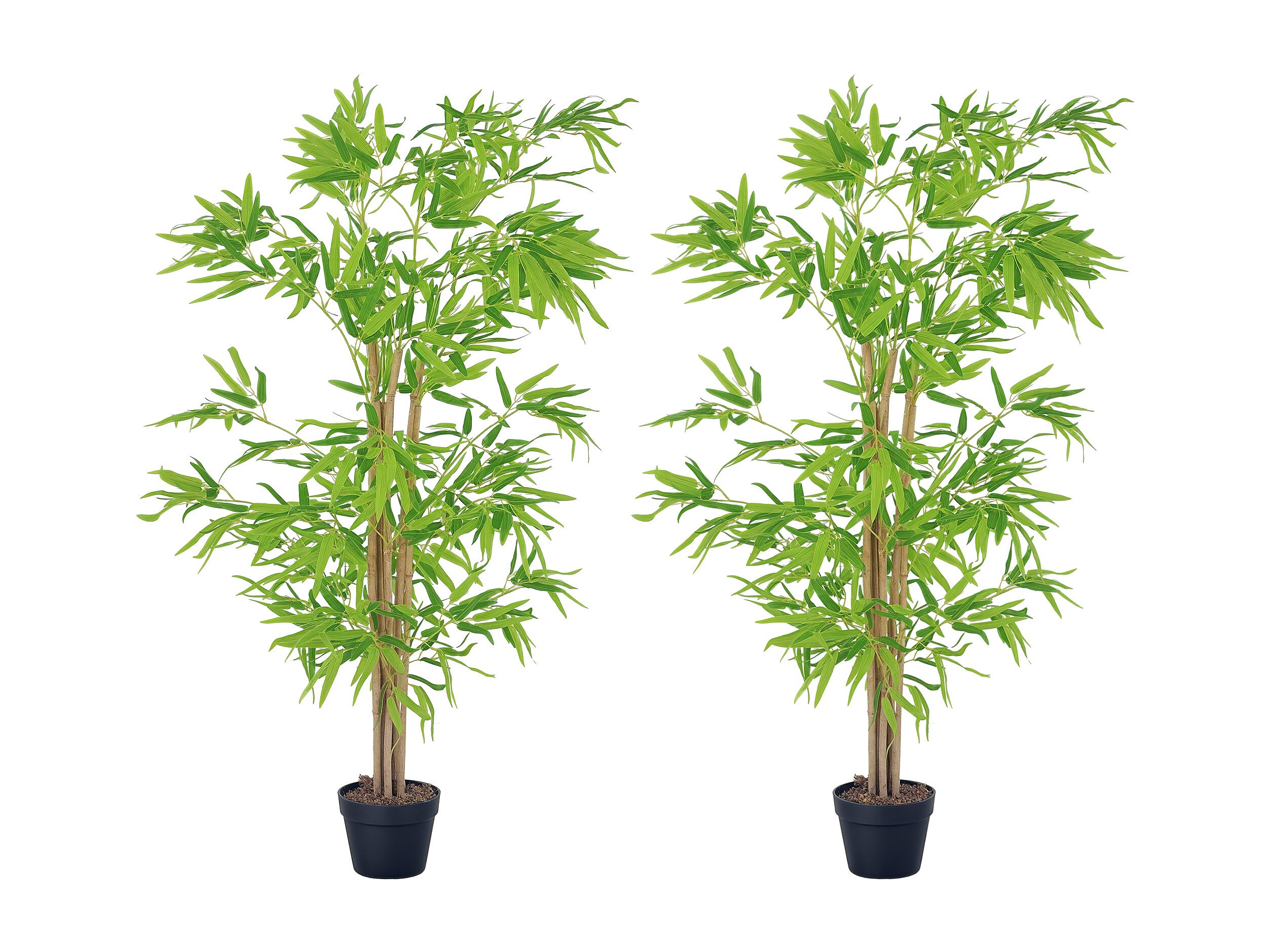 Bambous artificiels 1,20H m - lot de 2 bambous artificiels - 369 feuilles réalistes par bambou avec vrais troncs - pot inclus noir vert