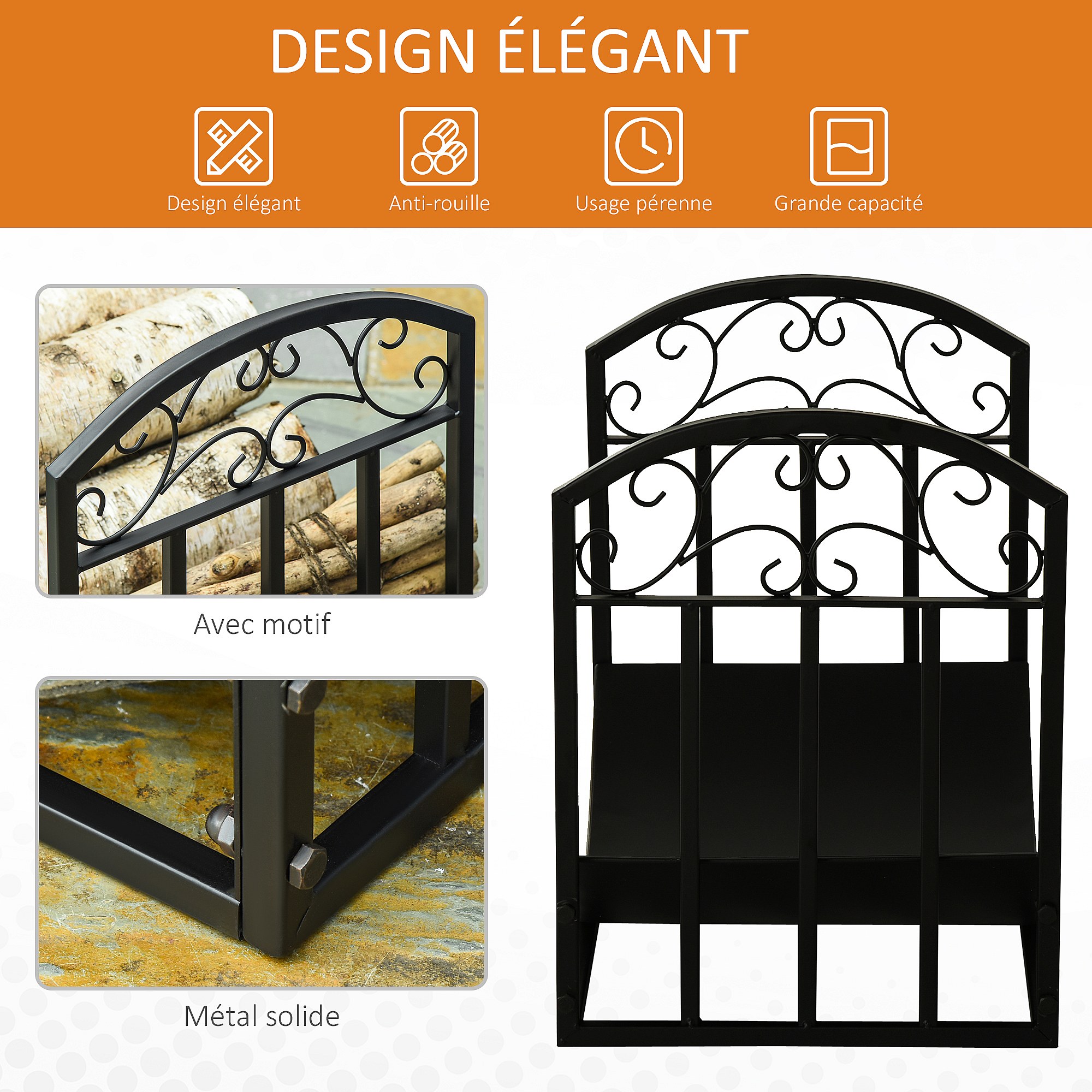 Outsunny Range-bûches rack à bûches style fer forgé dim. 60,5L x 36l x 46,5H cm métal noir