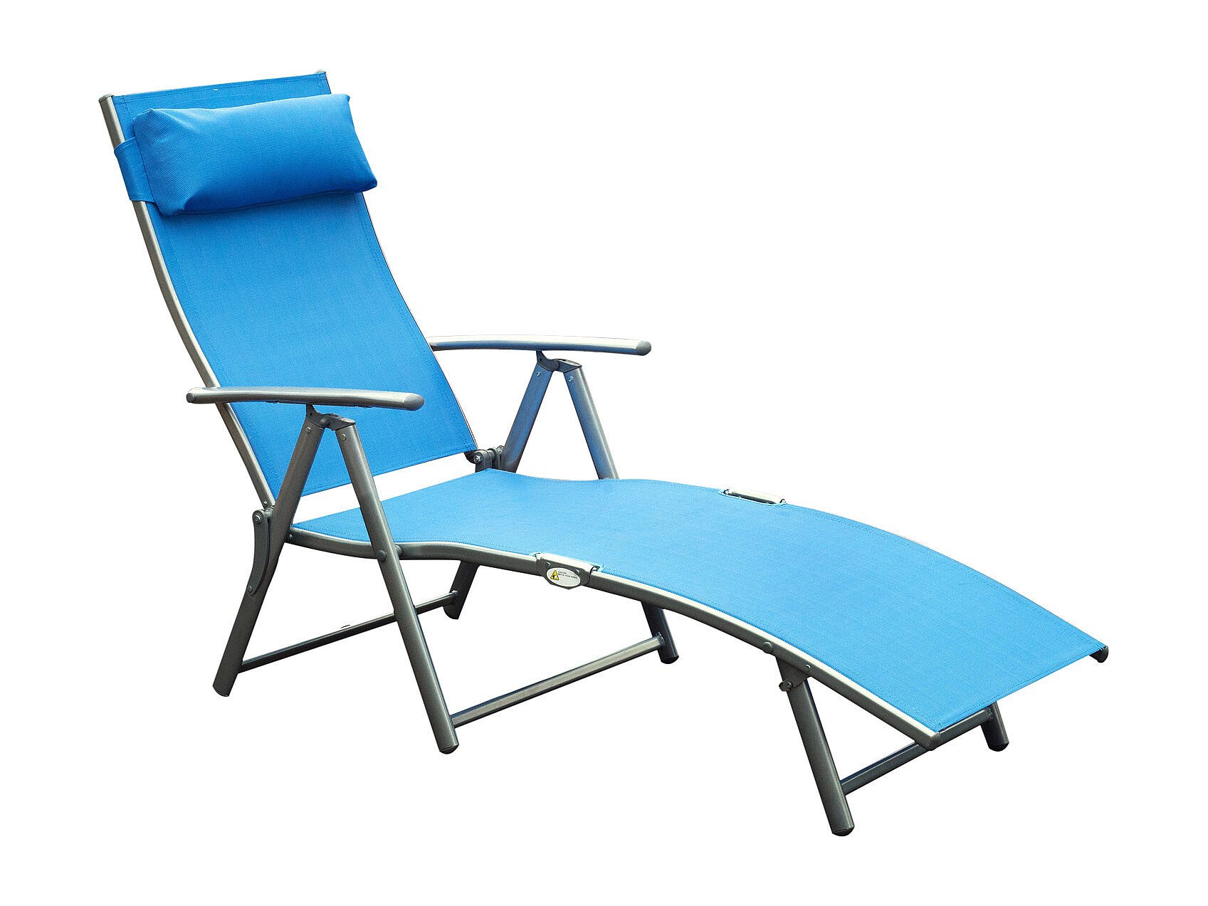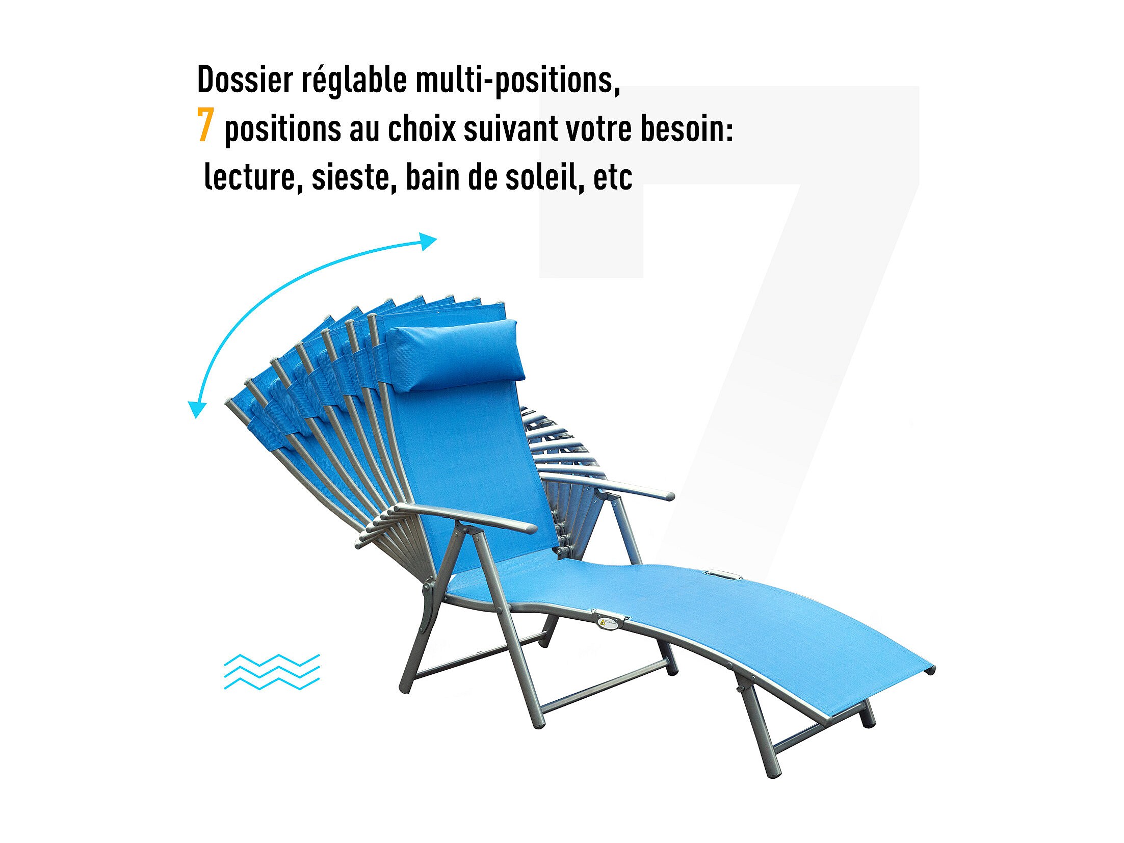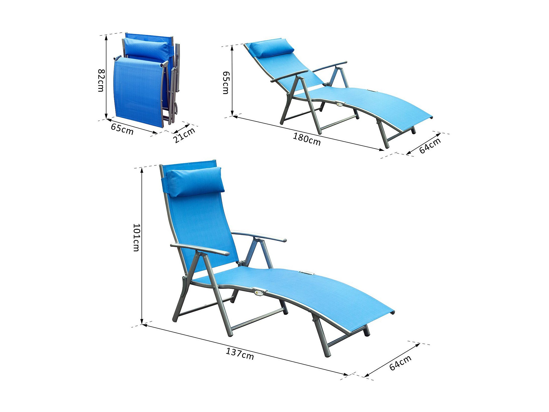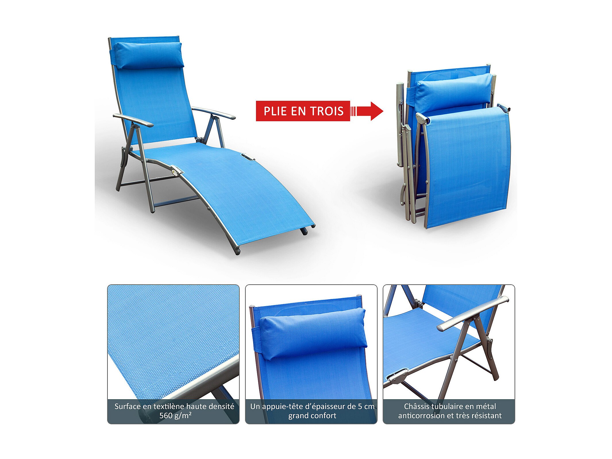 Outsunny transat chaise longue bain de soleil pliable dossier inclinable multi-positions têtière fournie 137L x 64l x 101H cm métal époxy textilène bleu
