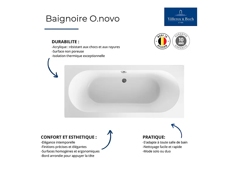 Pack baignoire 160 x 70 VILLEROY ET BOCH O Novo avec pieds et robinet