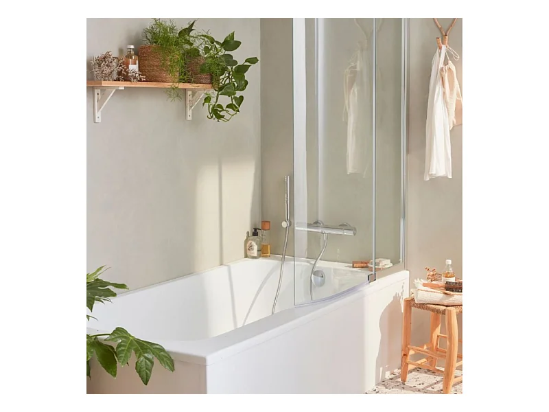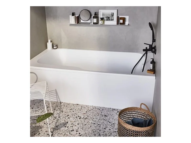 Pack baignoire bain douche 160 x 85 JACOB DELAFON Malice version droite + tablier en niche + pare bain + étagère pour pare bain