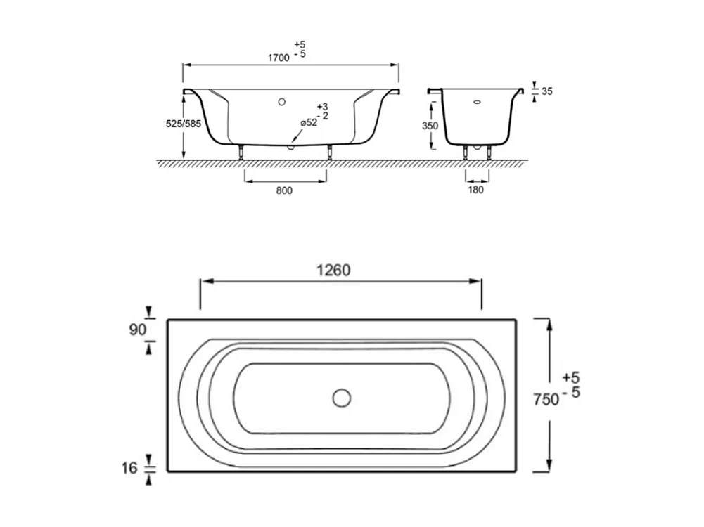 Pack baignoire droite 170 x 75 JACOB DELAFON Elise + pare bain noir mat + vidage