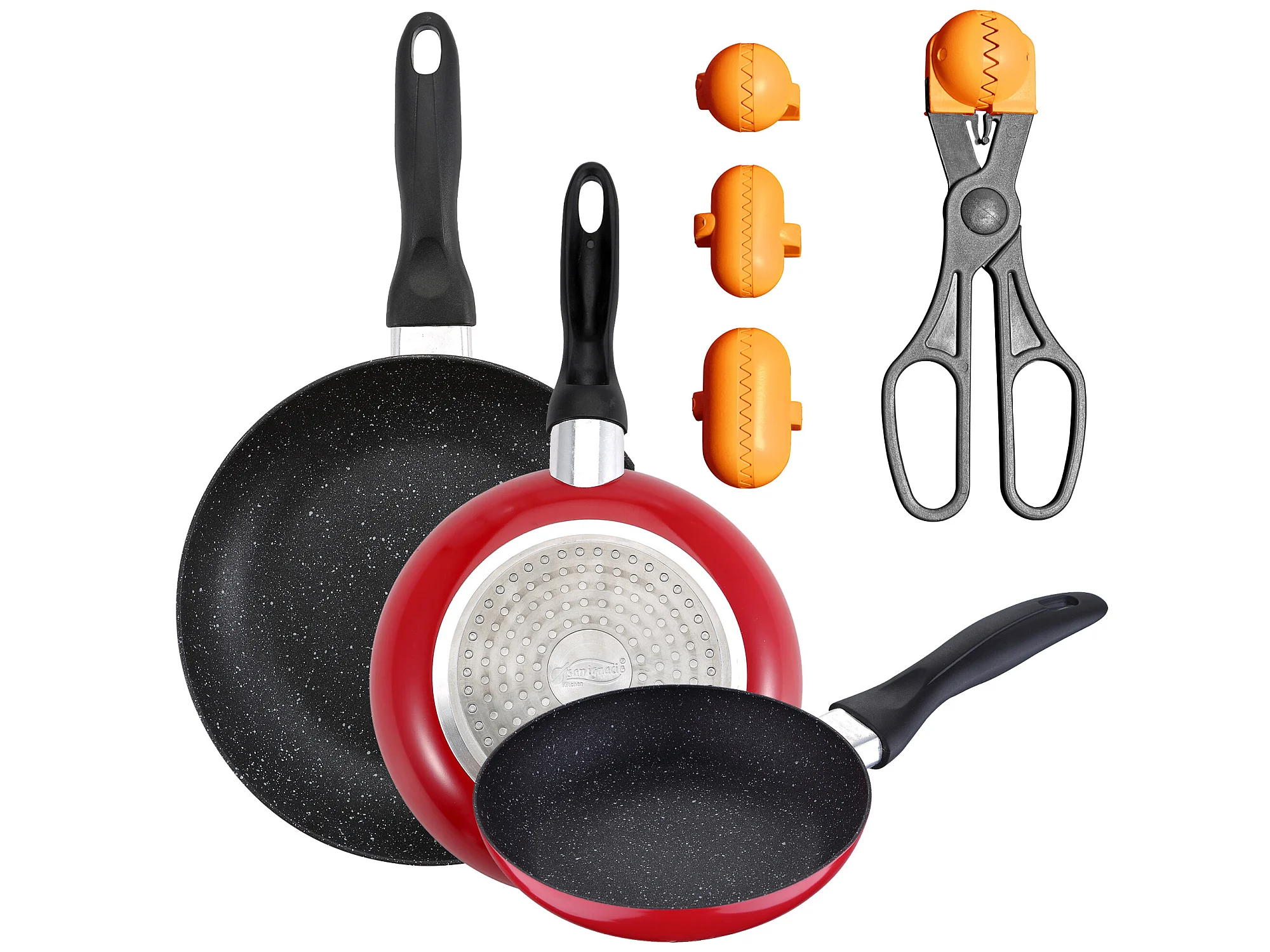 Pack de 3 casseroles ø20 / 24 et 28 cm + ustensile polyvalent pour croquettes avec 4 moules et 20 plateaux de rangement