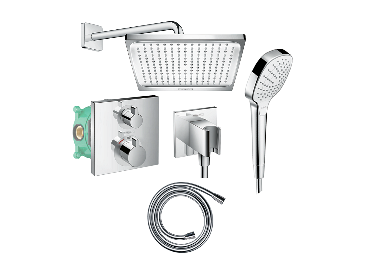 Pack de douche encastré thermostatique HANSGROHE Ecostat Square chromé