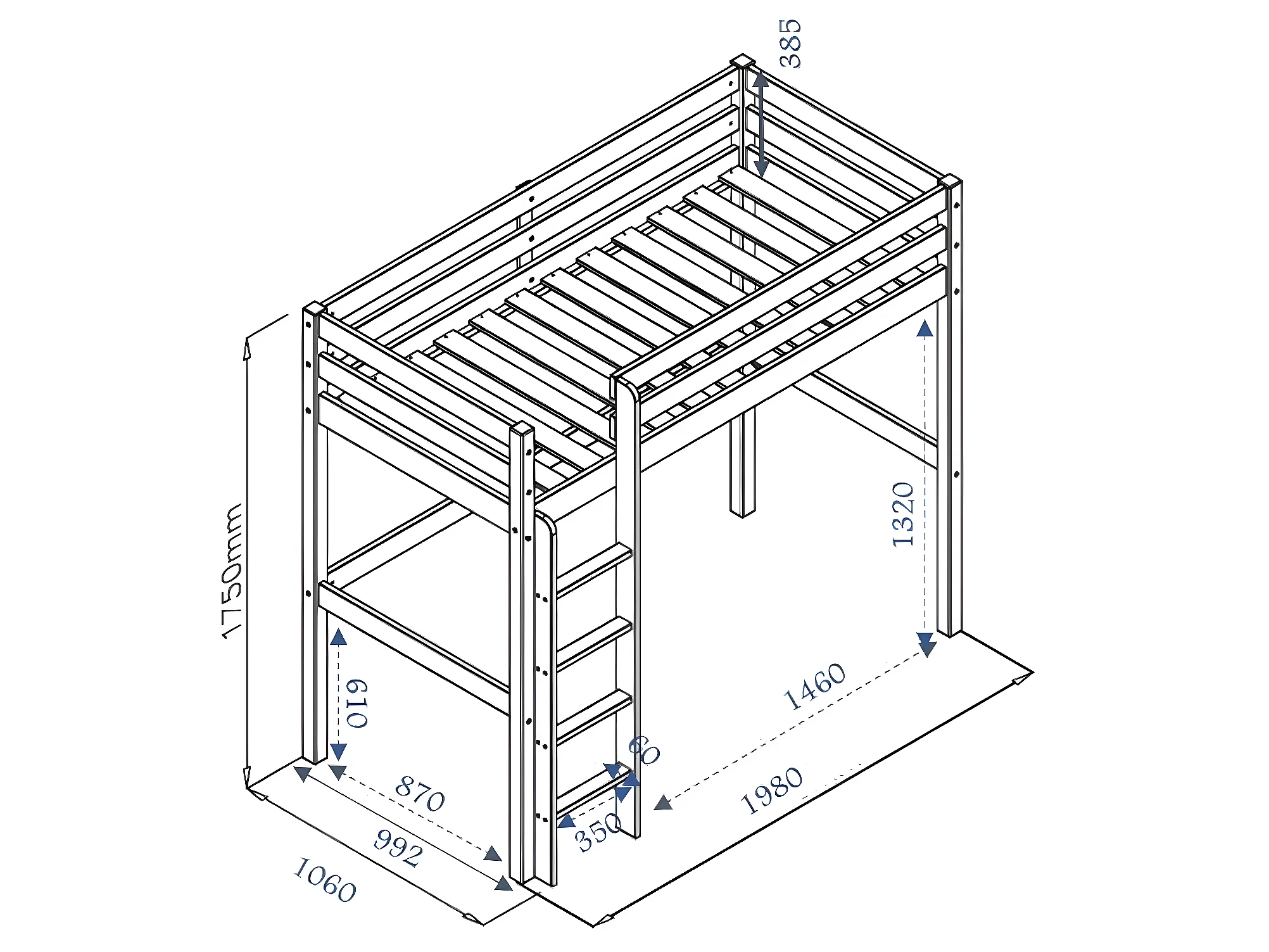 Pack lit mezzanine avec matelas 90x190 cm bois massif blanc AARON