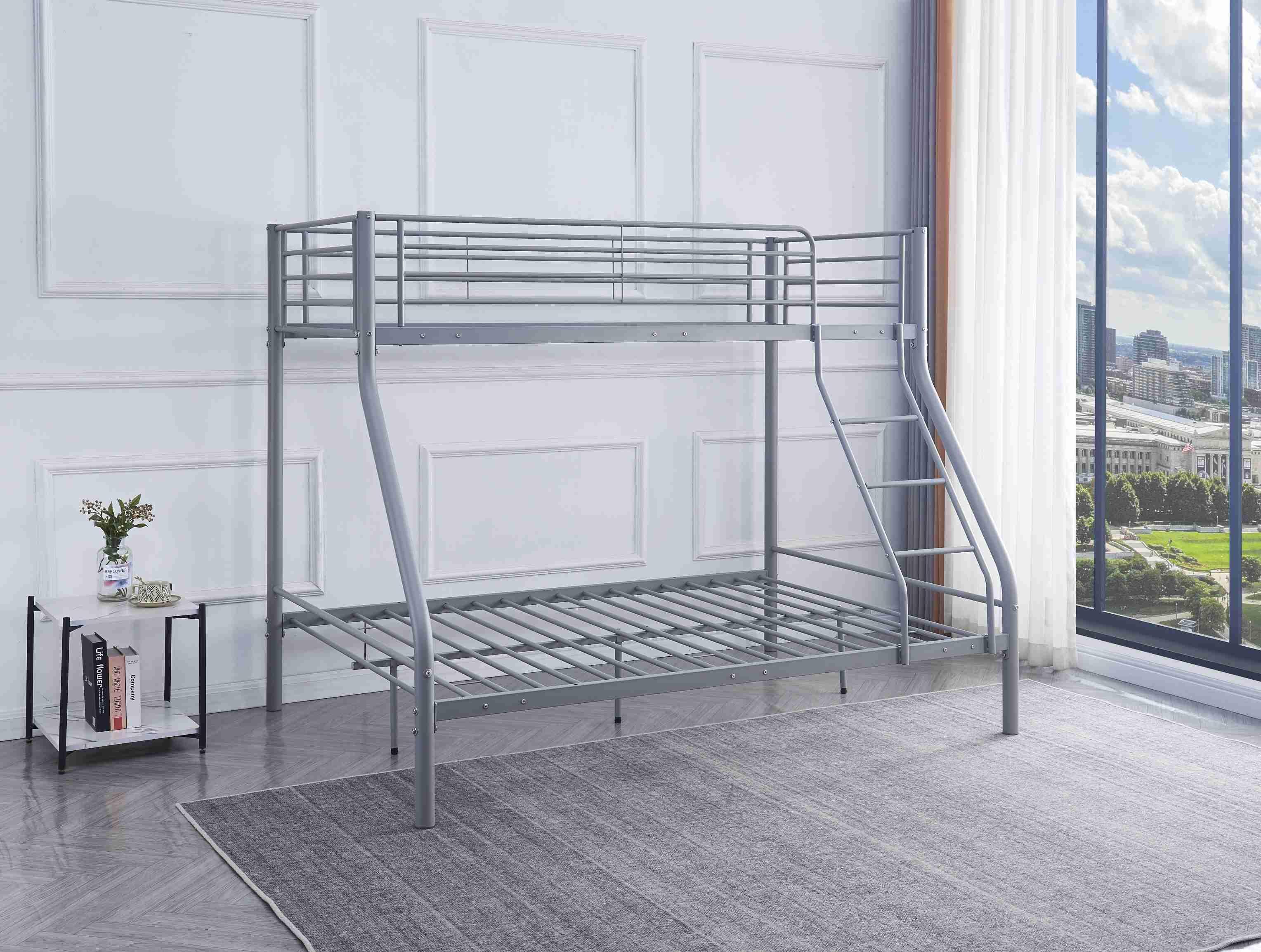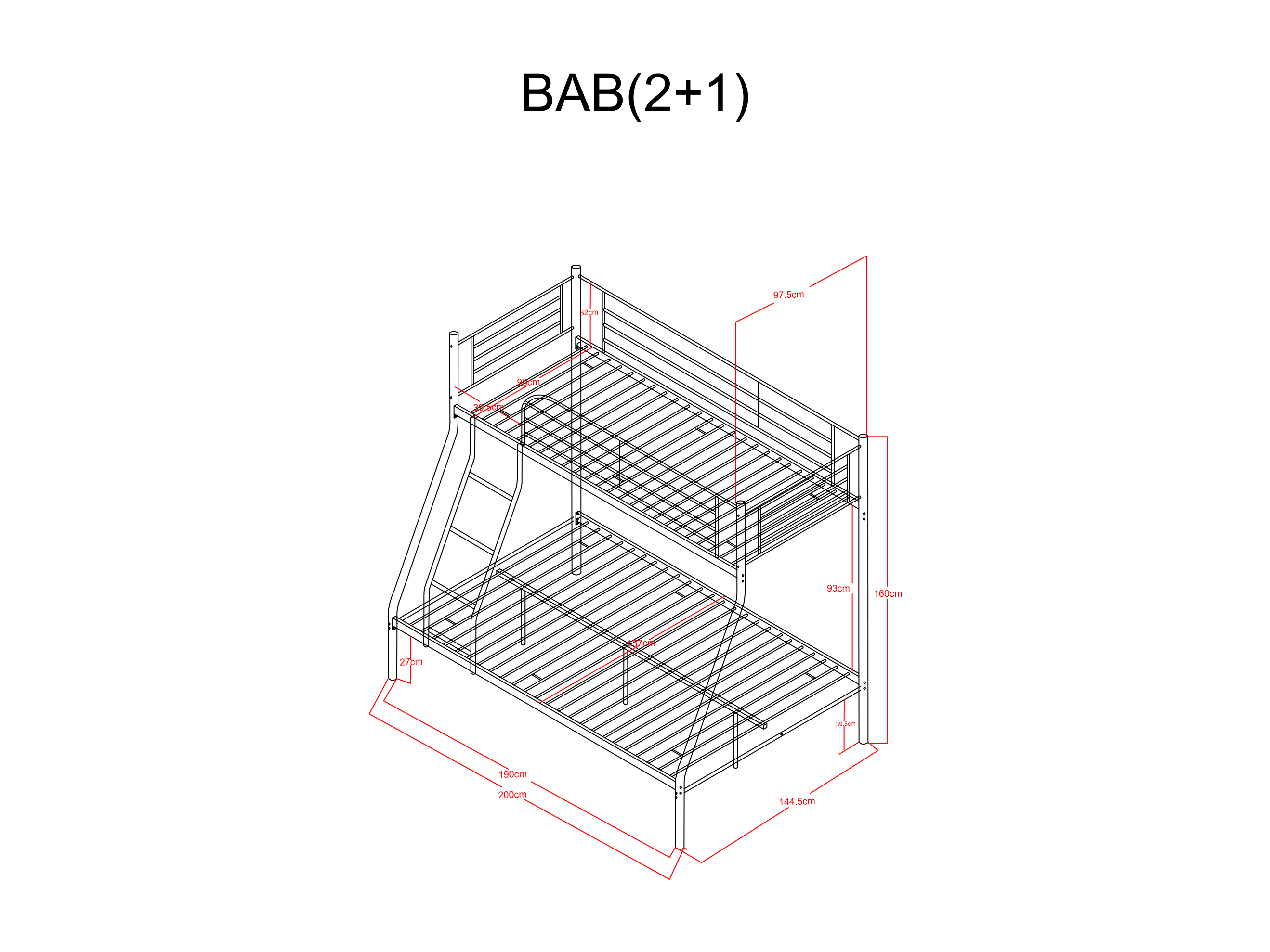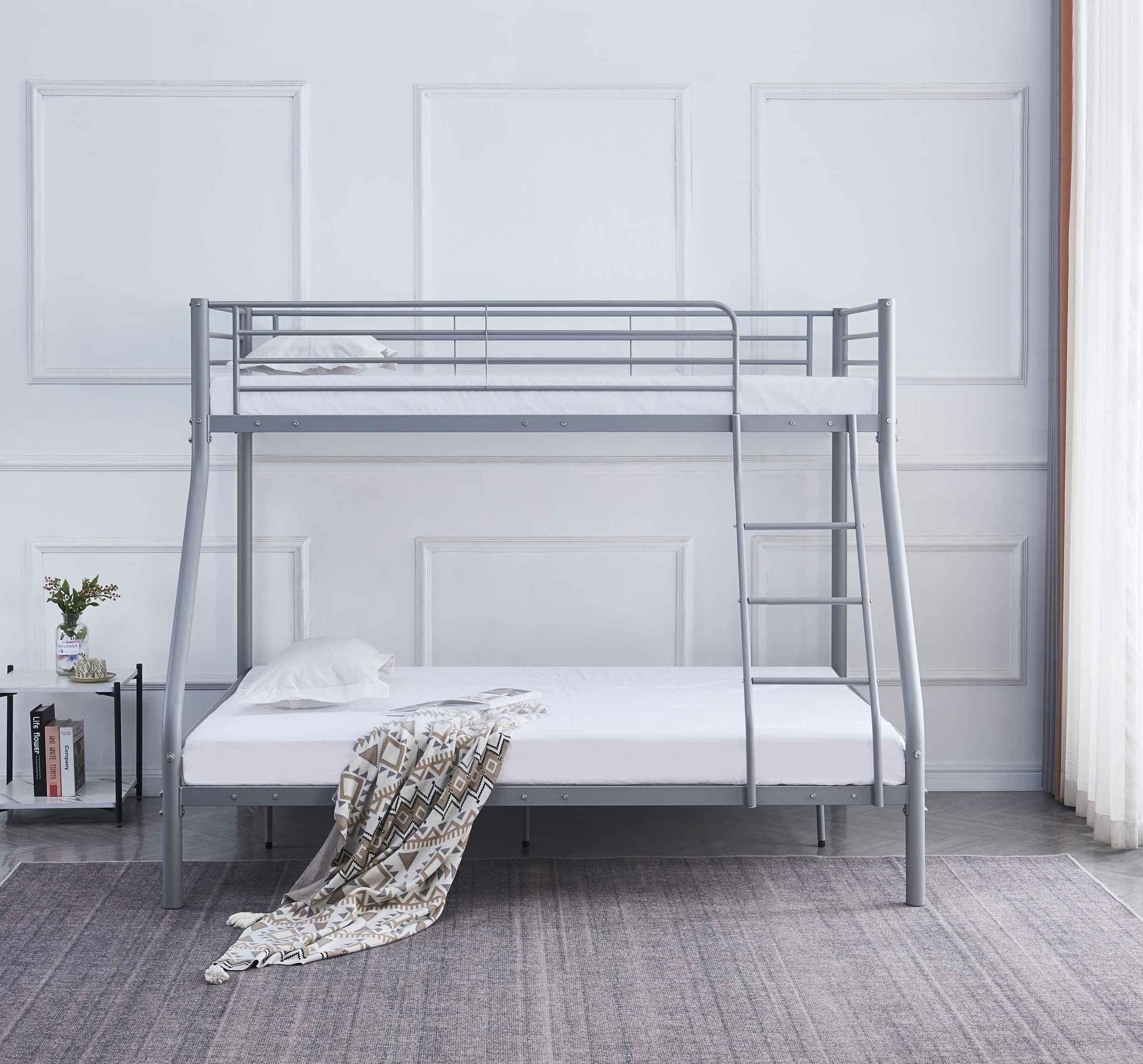 Pack Lit superposé 3 Places BAB 2+1G 140 x190 et 90 x 190 cm Gris + Matelas + Sommiers Séparable