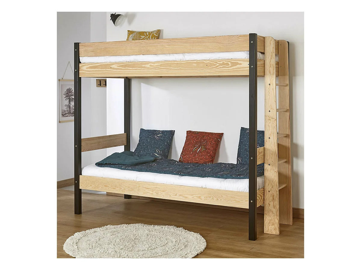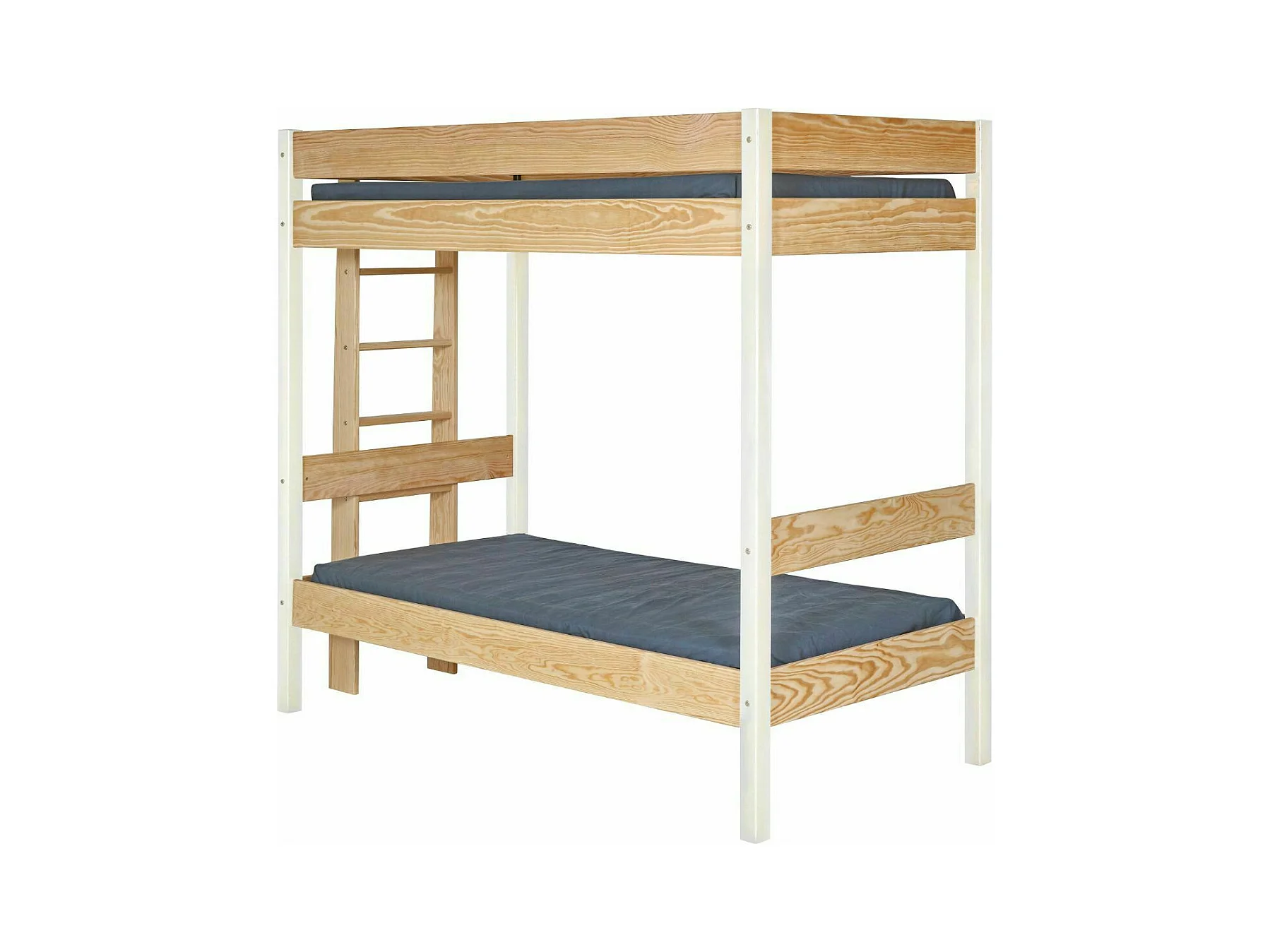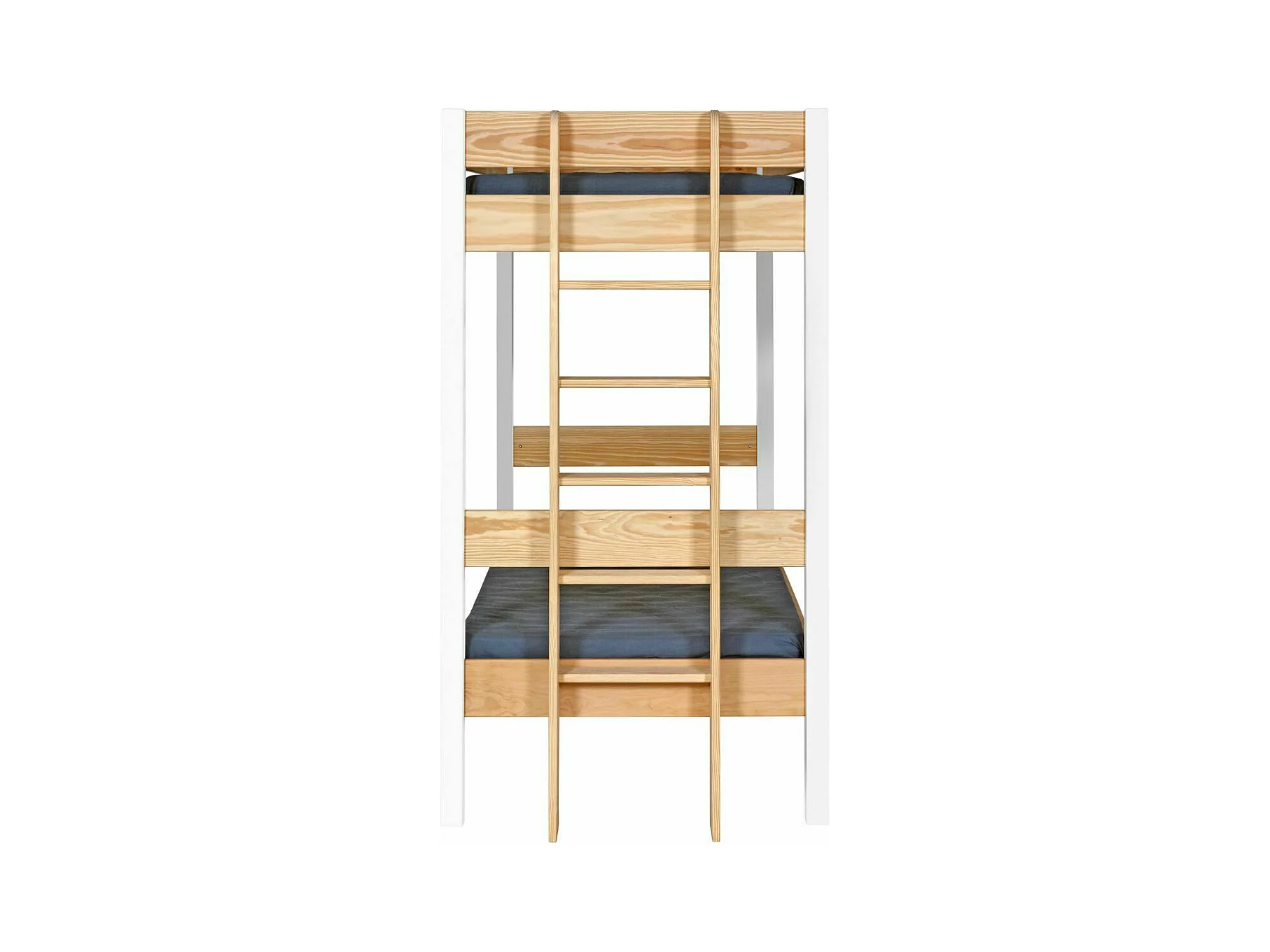 Pack lit superposé avec matelas 90x190 cm bois massif blanc et bois TINO