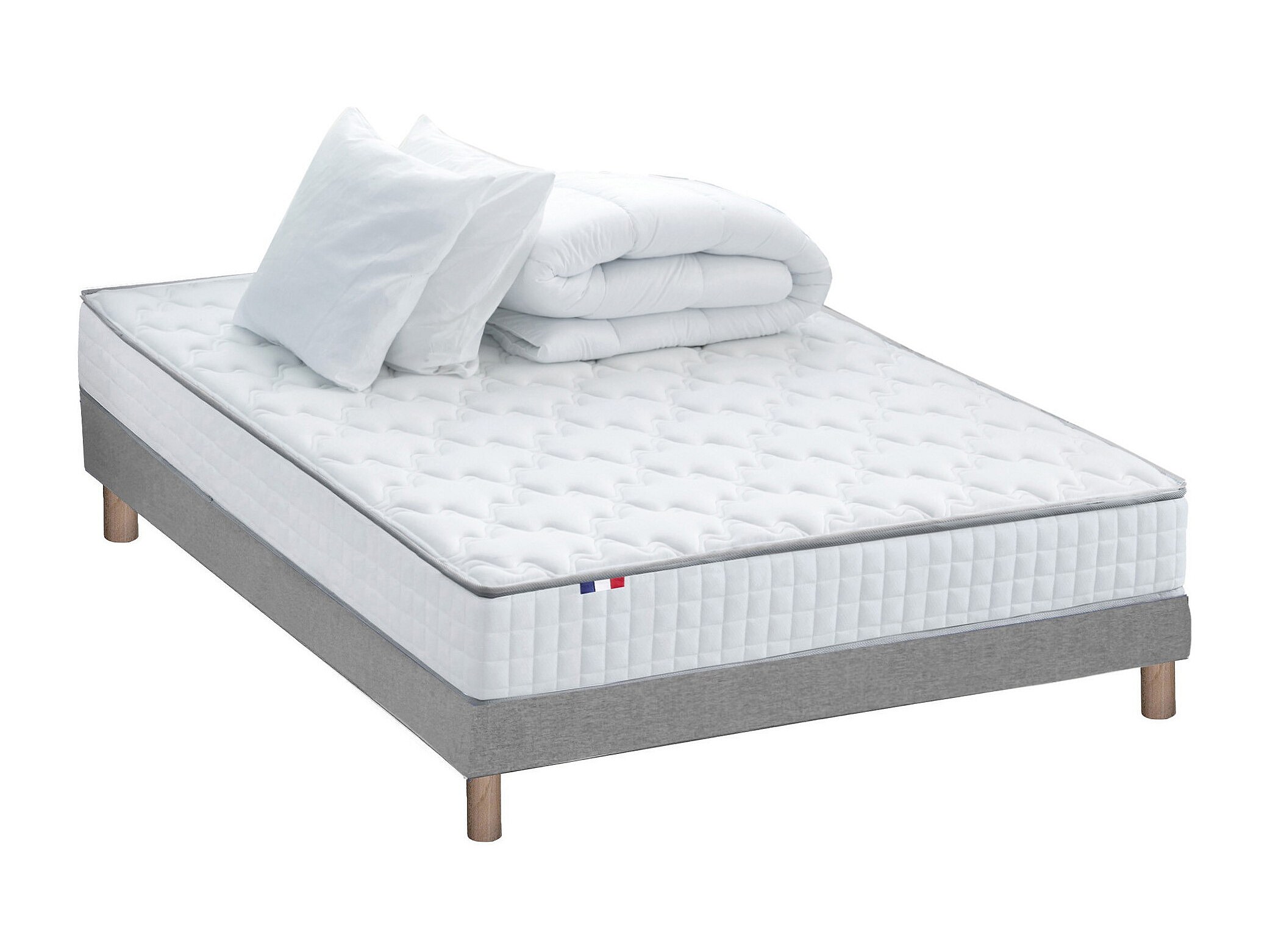 Pack matelas ressorts ASTRE, sommier, couette et oreillers français Dimensions - 140 x 200 cm, Sommier - Gris