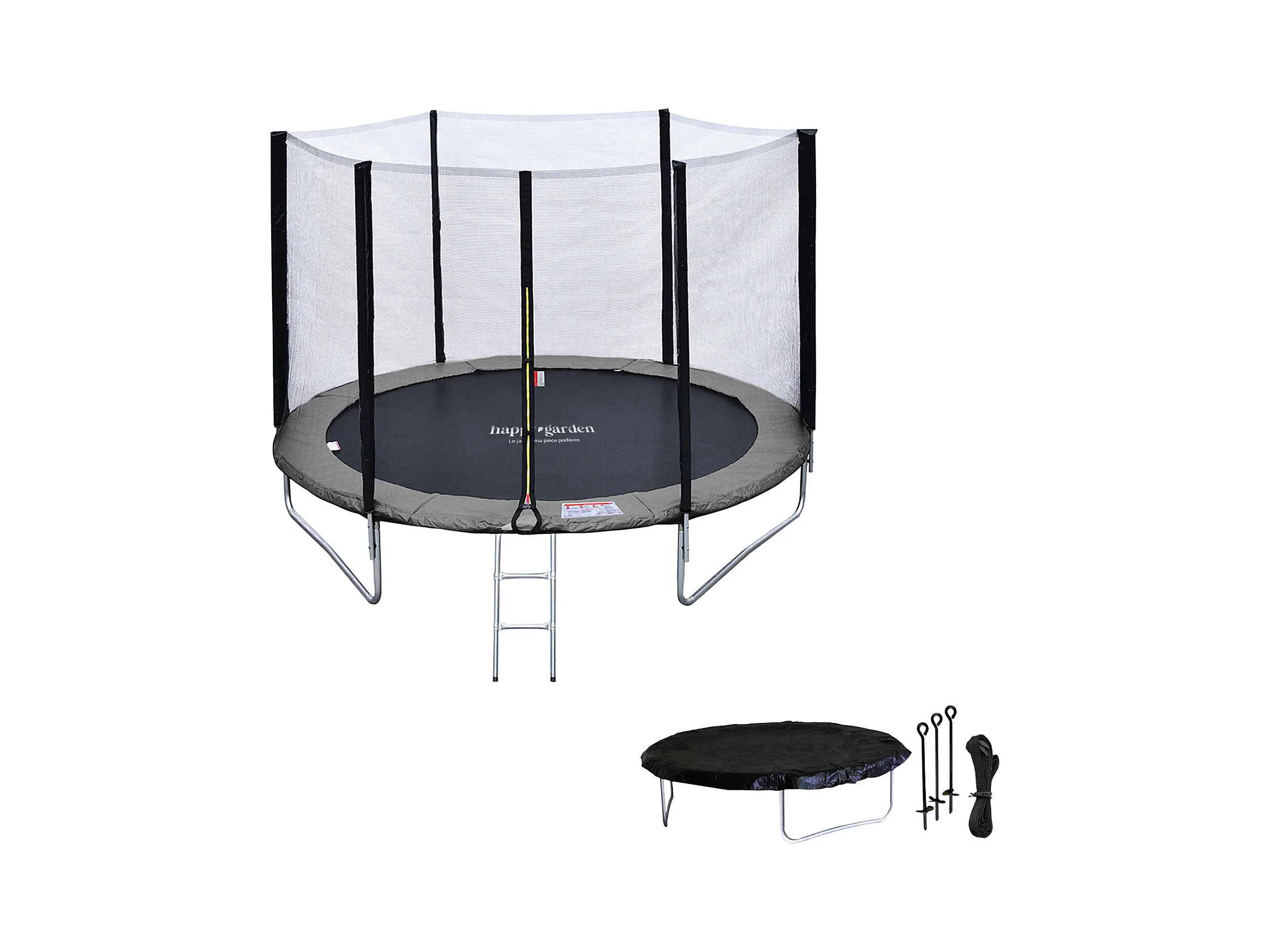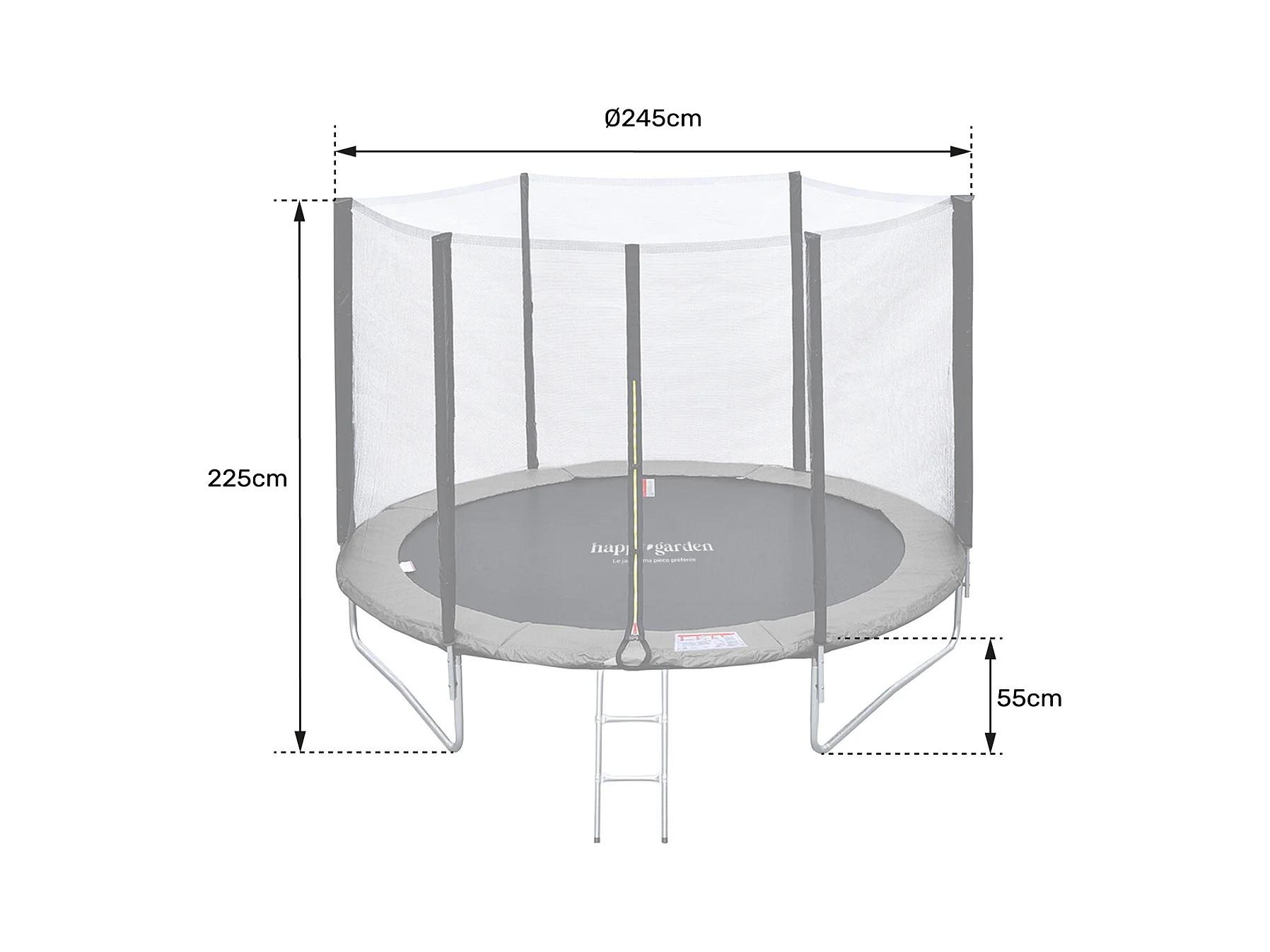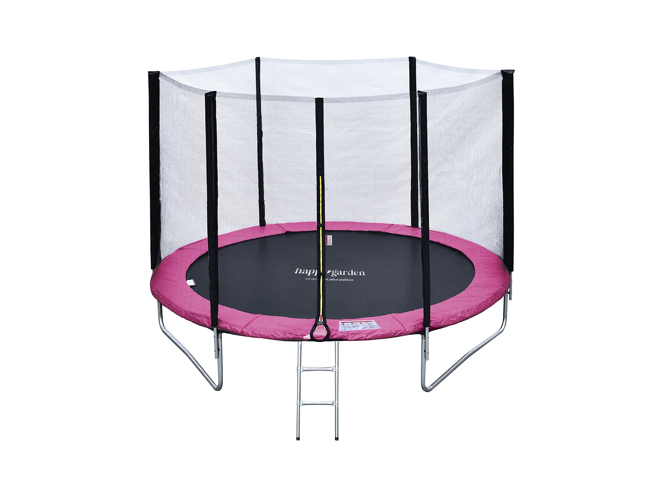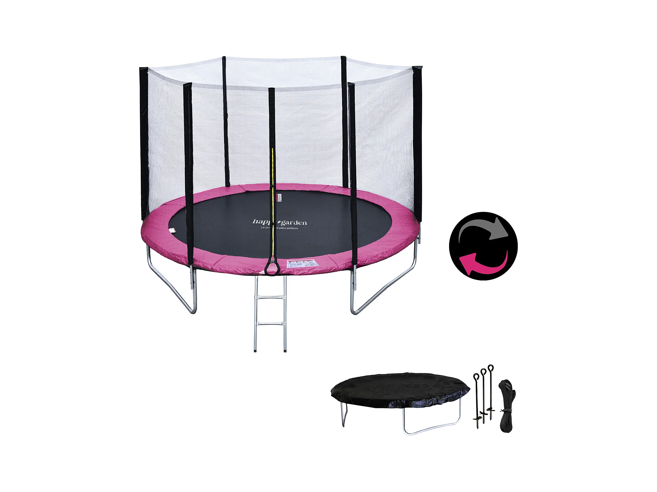 Trampoline 245cm réversible rose / gris CANBERRA + filet, échelle, bâche et kit d'ancr - HAPPY GARDEN