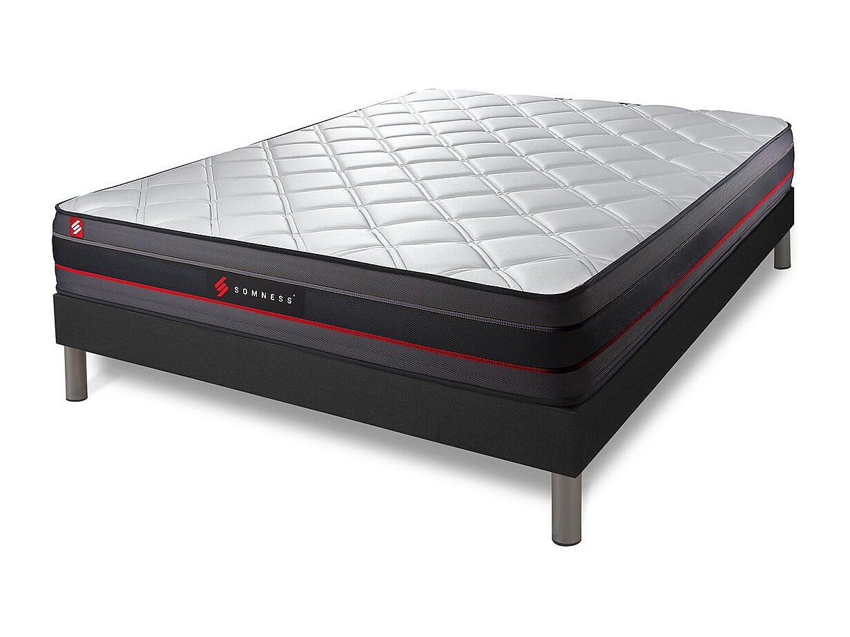 Pack prêt à dormir 160x200 matelas REGEN à mémoire de forme + sommier kit noir + Couette 260x240cm + 2 oreillers 60x40cm