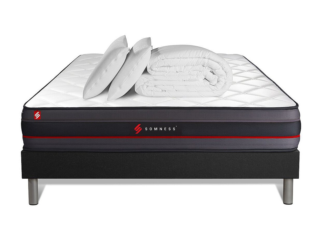Pack prêt à dormir 180x200 matelas REGEN à mémoire de forme + sommier kit noir + Couette 260x240cm + 2 oreillers 60x40cm