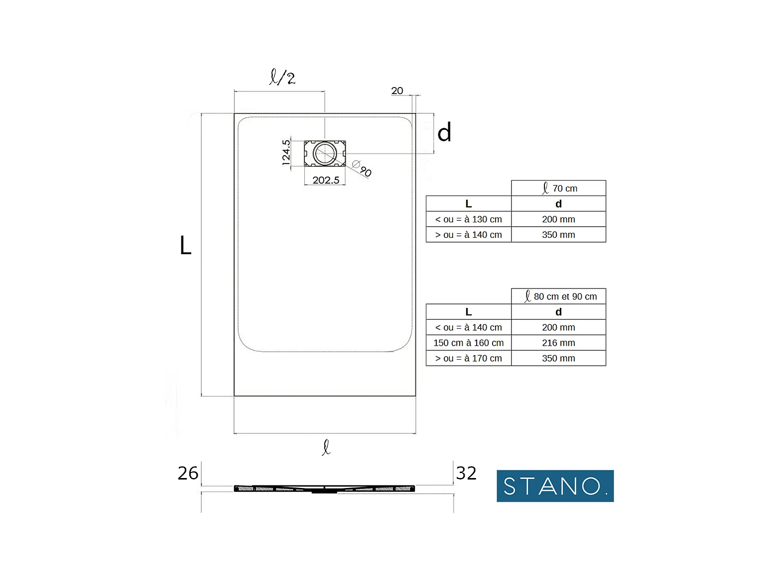 Pack Receveur de douche 70 x 100 cm extra plat blanc + Colonne de douche thermostatique