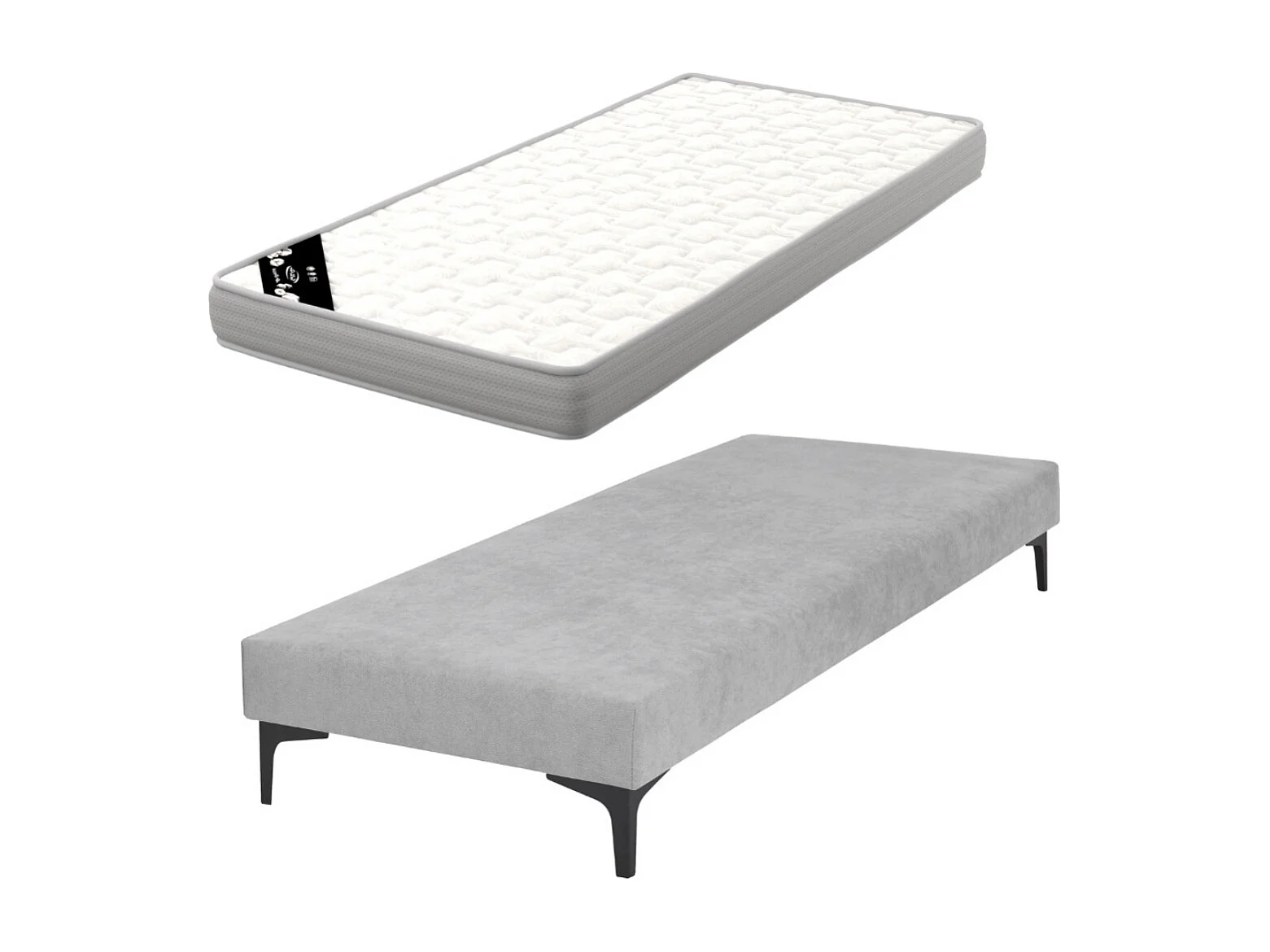 Pack sommier tapissier avec matelas 70x190 cm bois massif gris HILIANA
