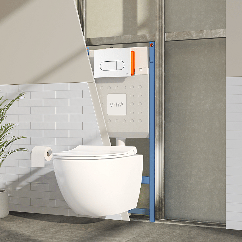 Pack WC suspendu VITRA Sento blanc mat + bâti autoportant V-Fix Core + Plaque Round Blanche