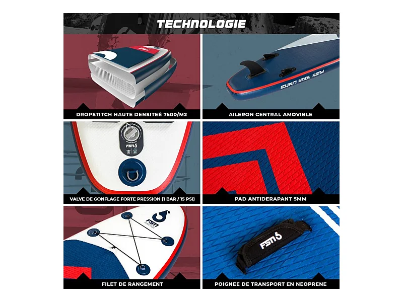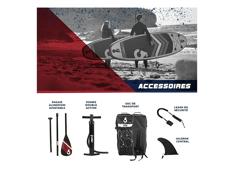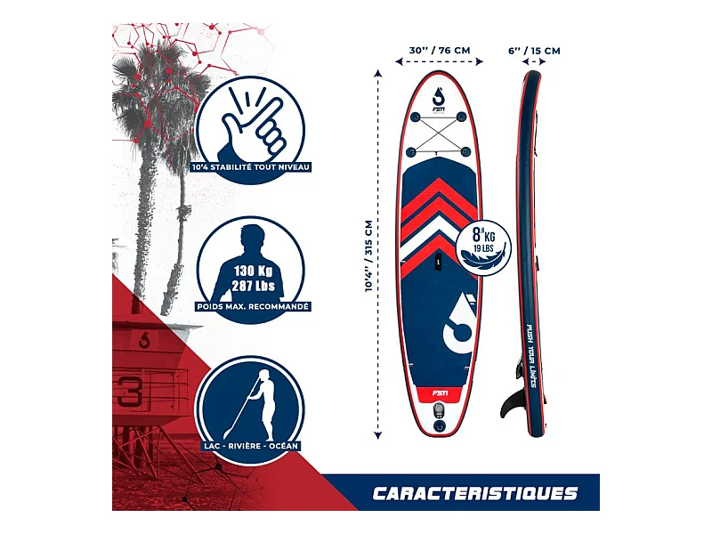 Paddle gonflable AMBITION 10'4 - 317x76x15 cm - Stand up paddle avec pagaie, leash, pompe, anneaux de kayak et sac de transport