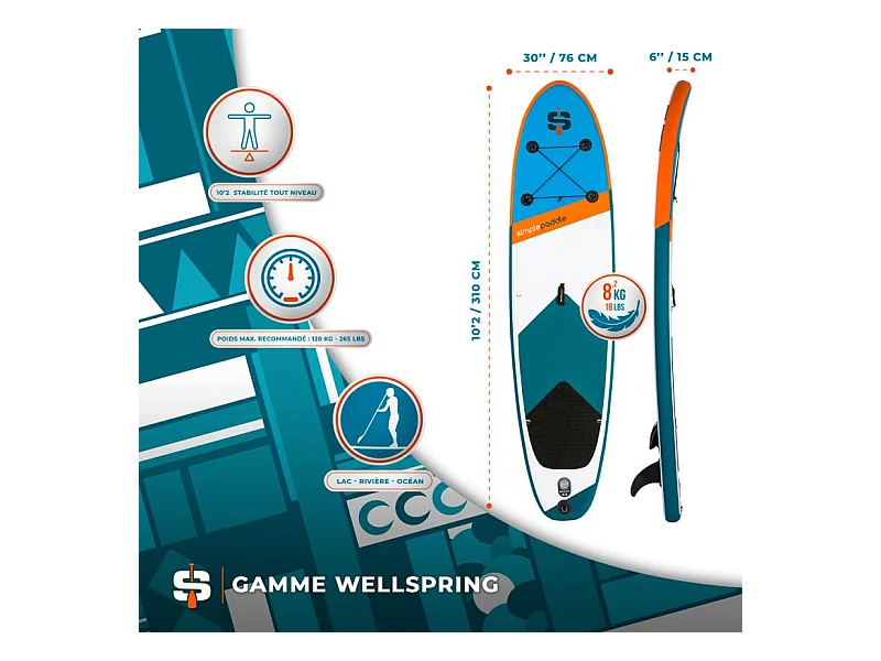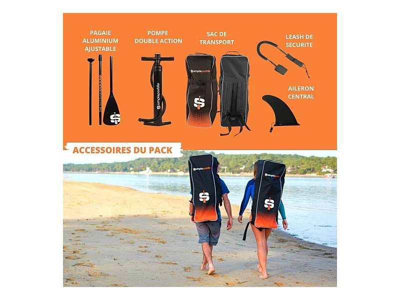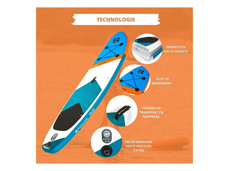 Paddle Gonflable S2 10'2" 30'' 5'' (310 x 76 x 13 cm) avec Pagaie, Leash, Pompe et Sac de Transport