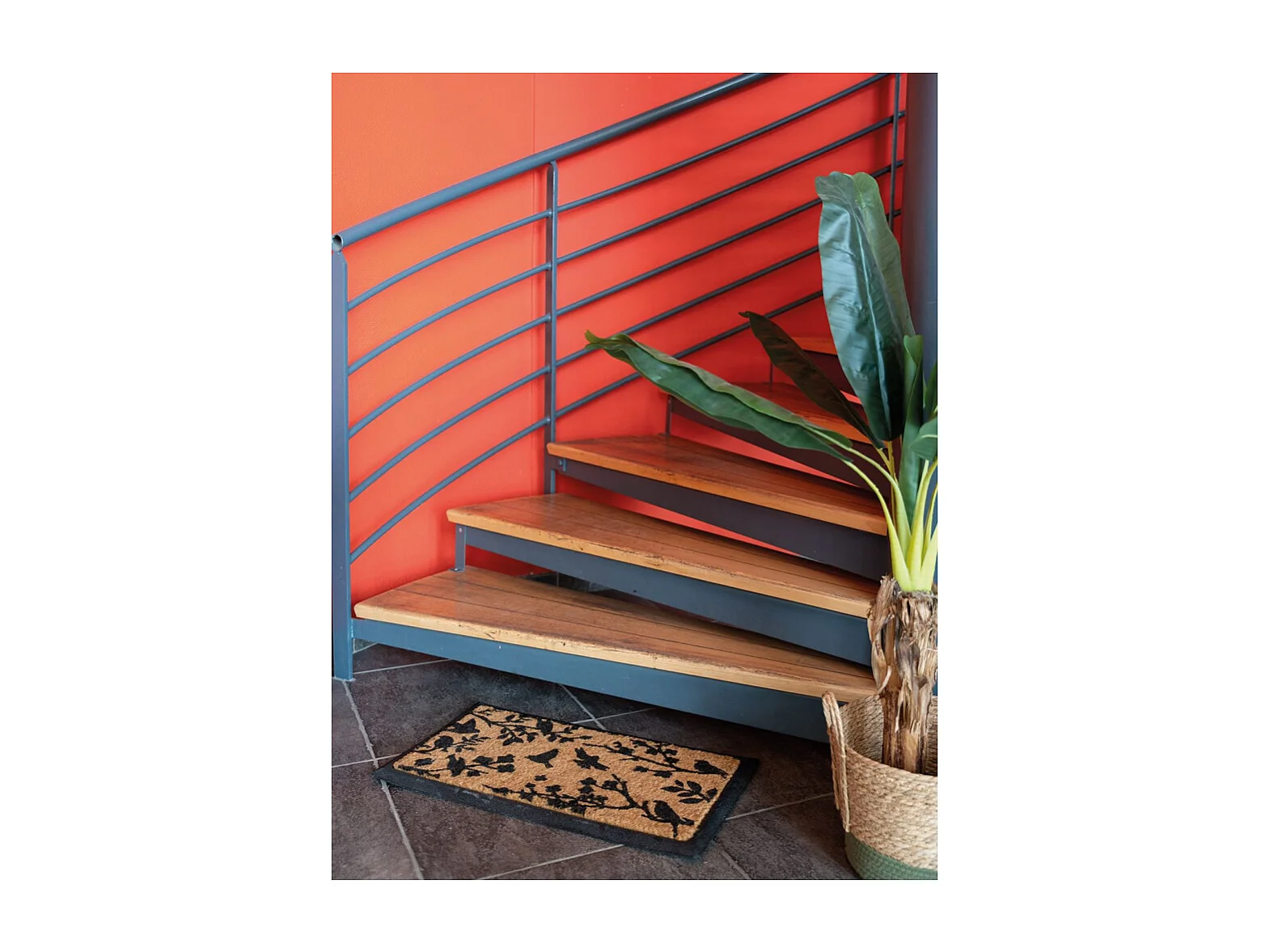 Paillasson en coco motif oiseaux avec dos latexé antidérapant – 70x40 cm