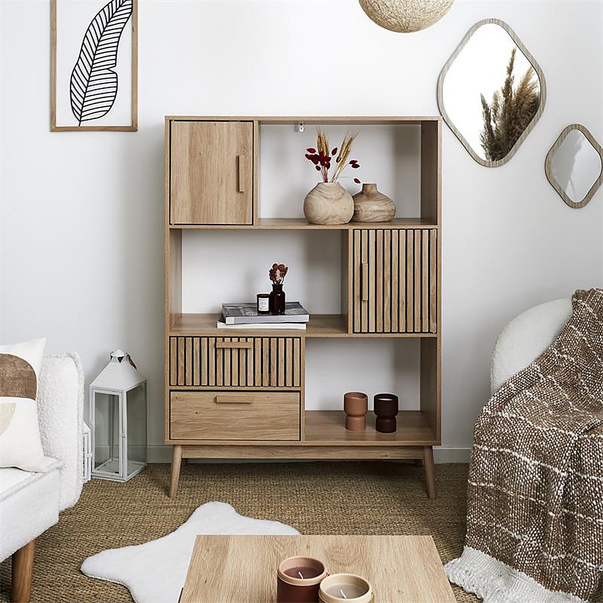 PAJAN - Bibliothèque Etagère Effet Bois avec Tasseaux