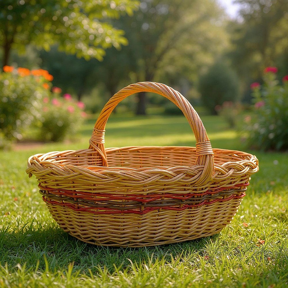 Panier en osier avec couvercle et bandoulière – 41 cm x 30 cm x h 42 cm