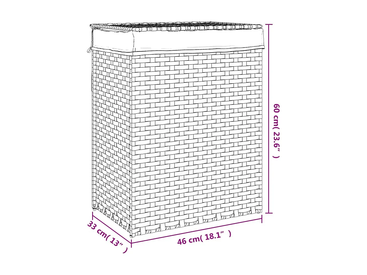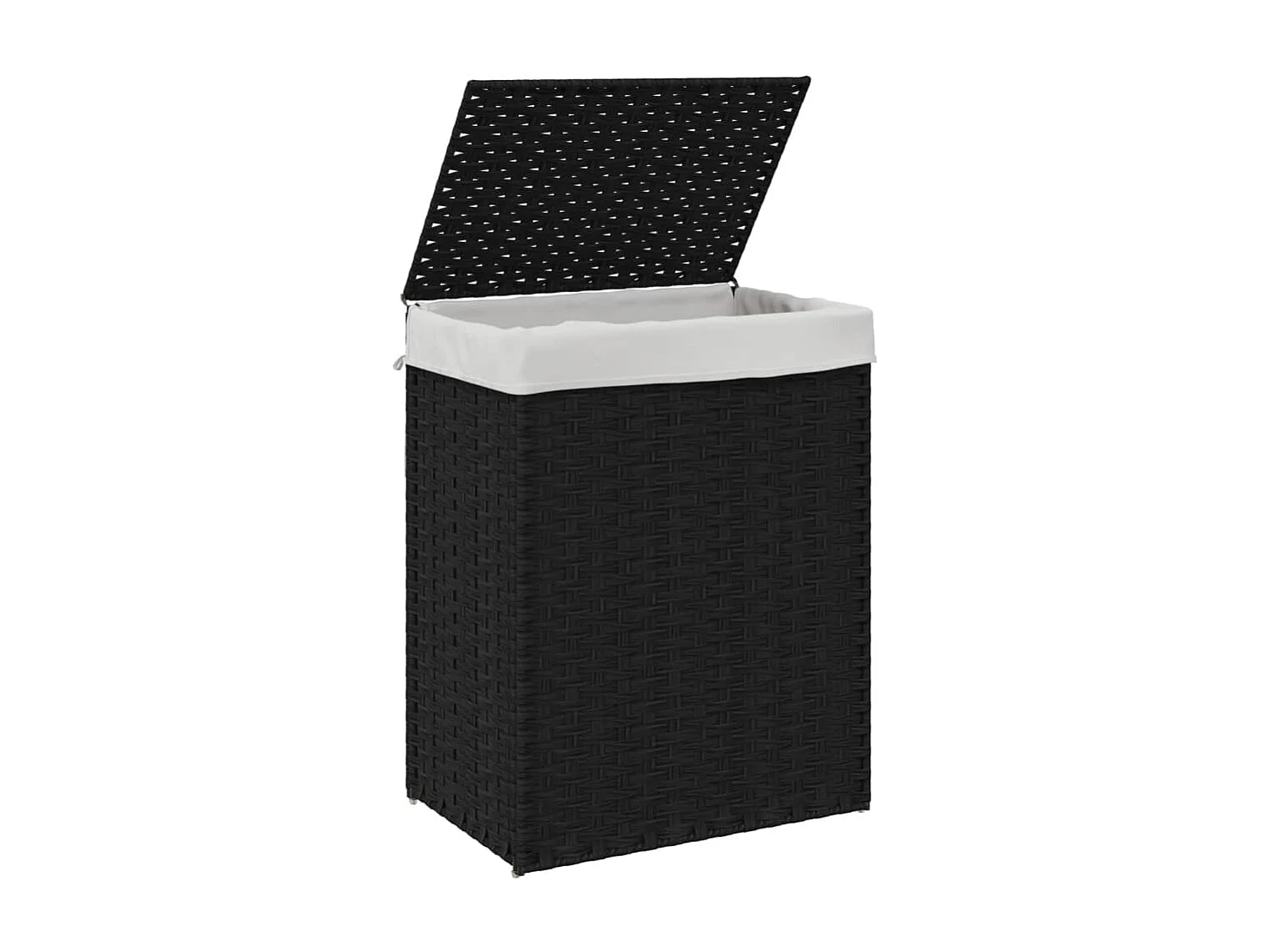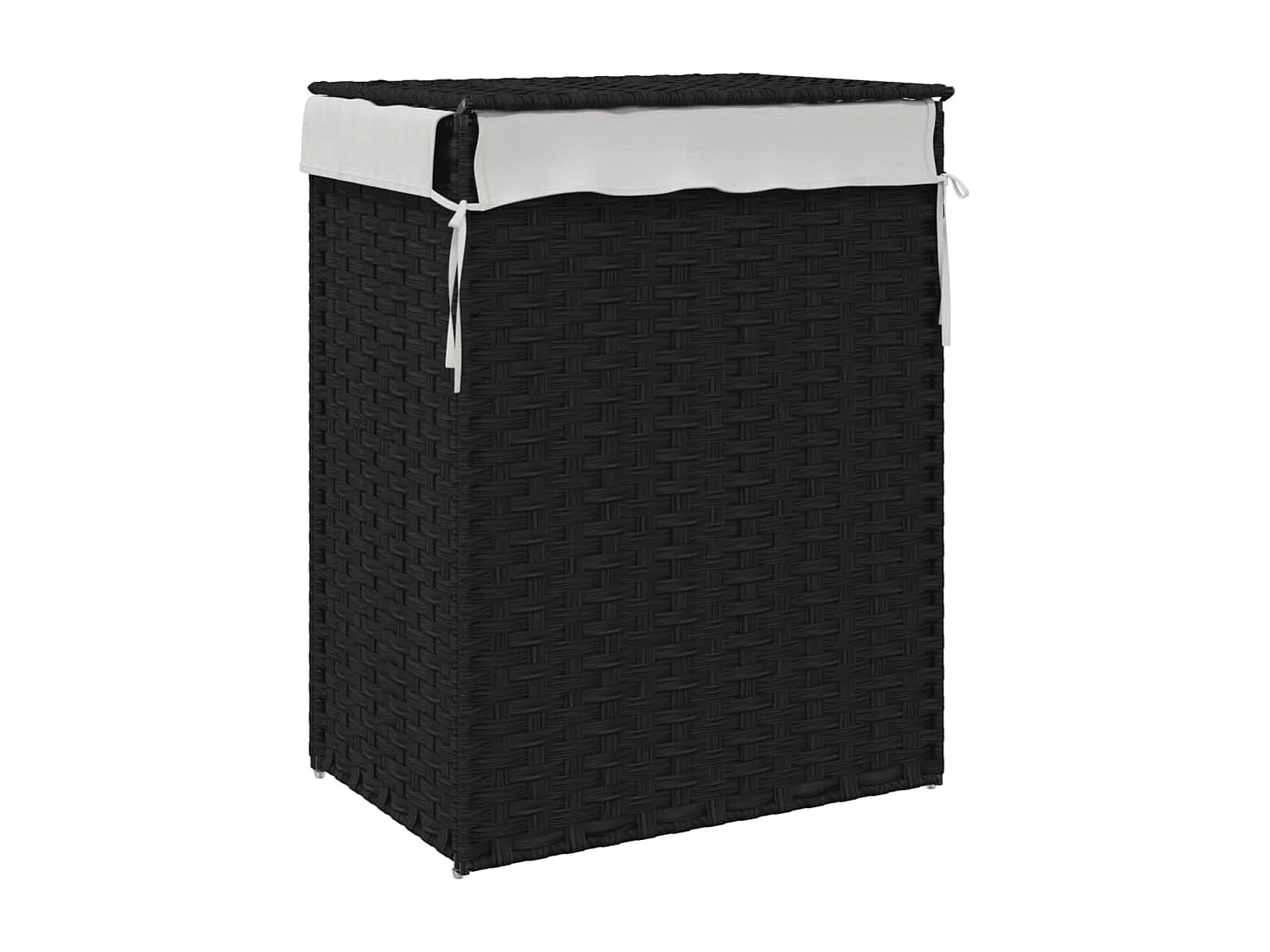 Panier à linge avec 2 sections noir 53x35x57 résine tressée