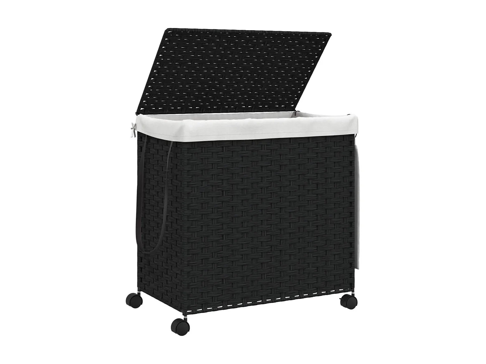 Panier à linge avec 2 sections noir 53x35x57 cm résine tressée