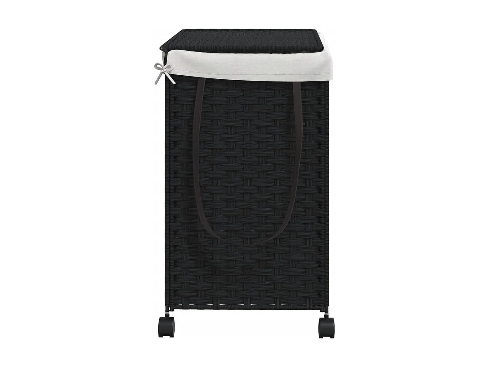 Panier à linge avec roulettes noir 66x35x60 résine tressée