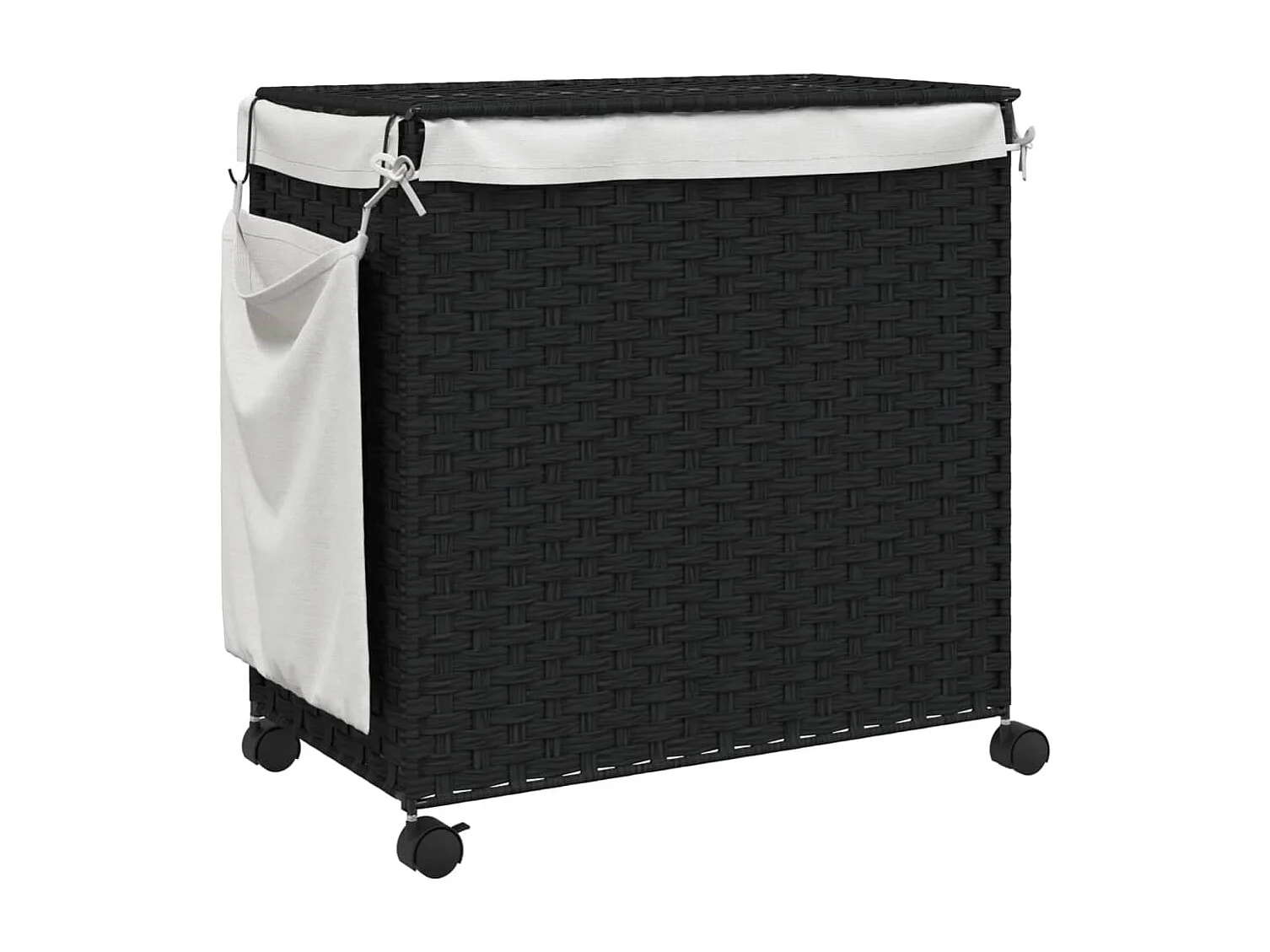 Panier à linge avec 2 sections noir 53x35x57 résine tressée