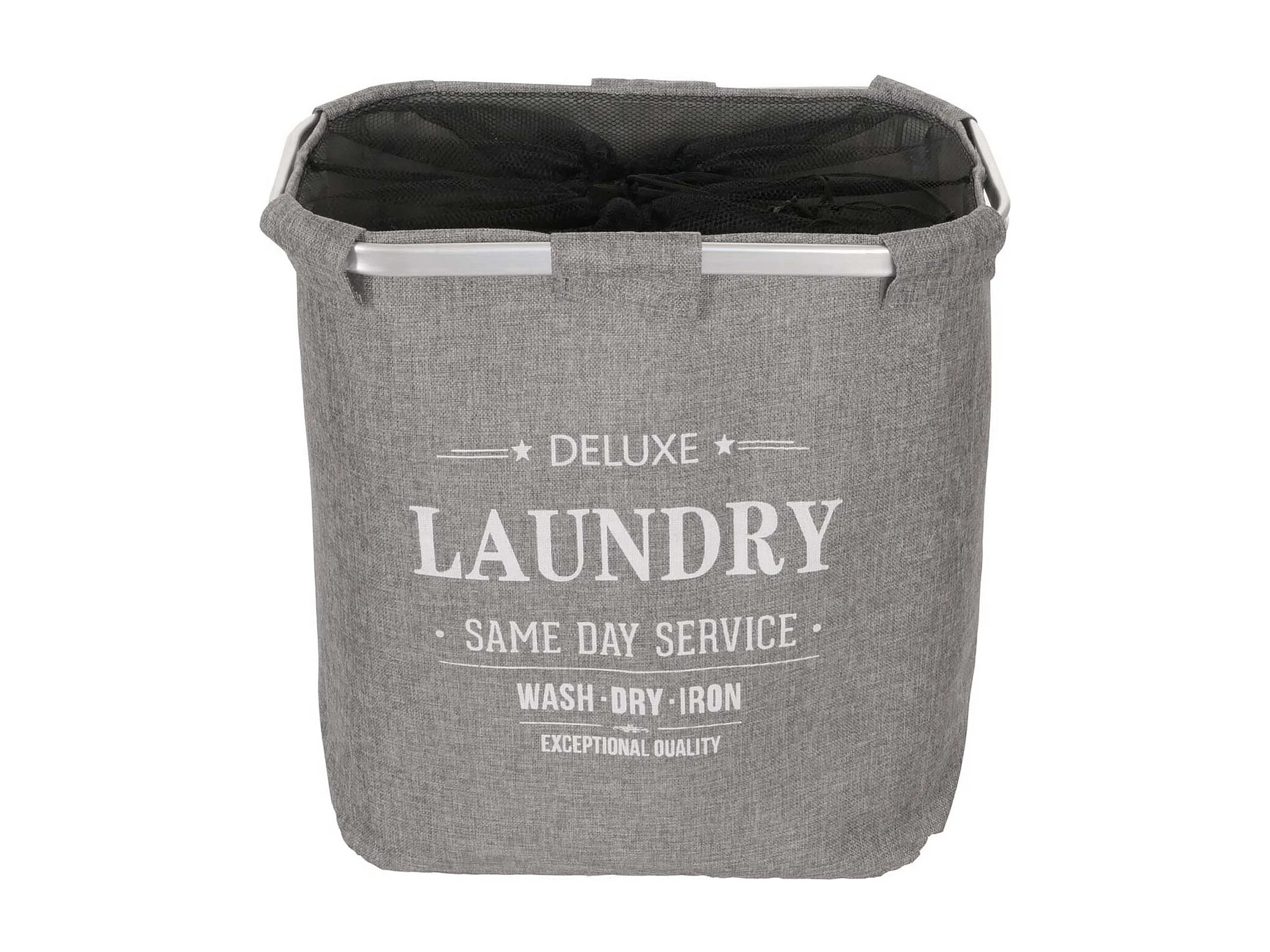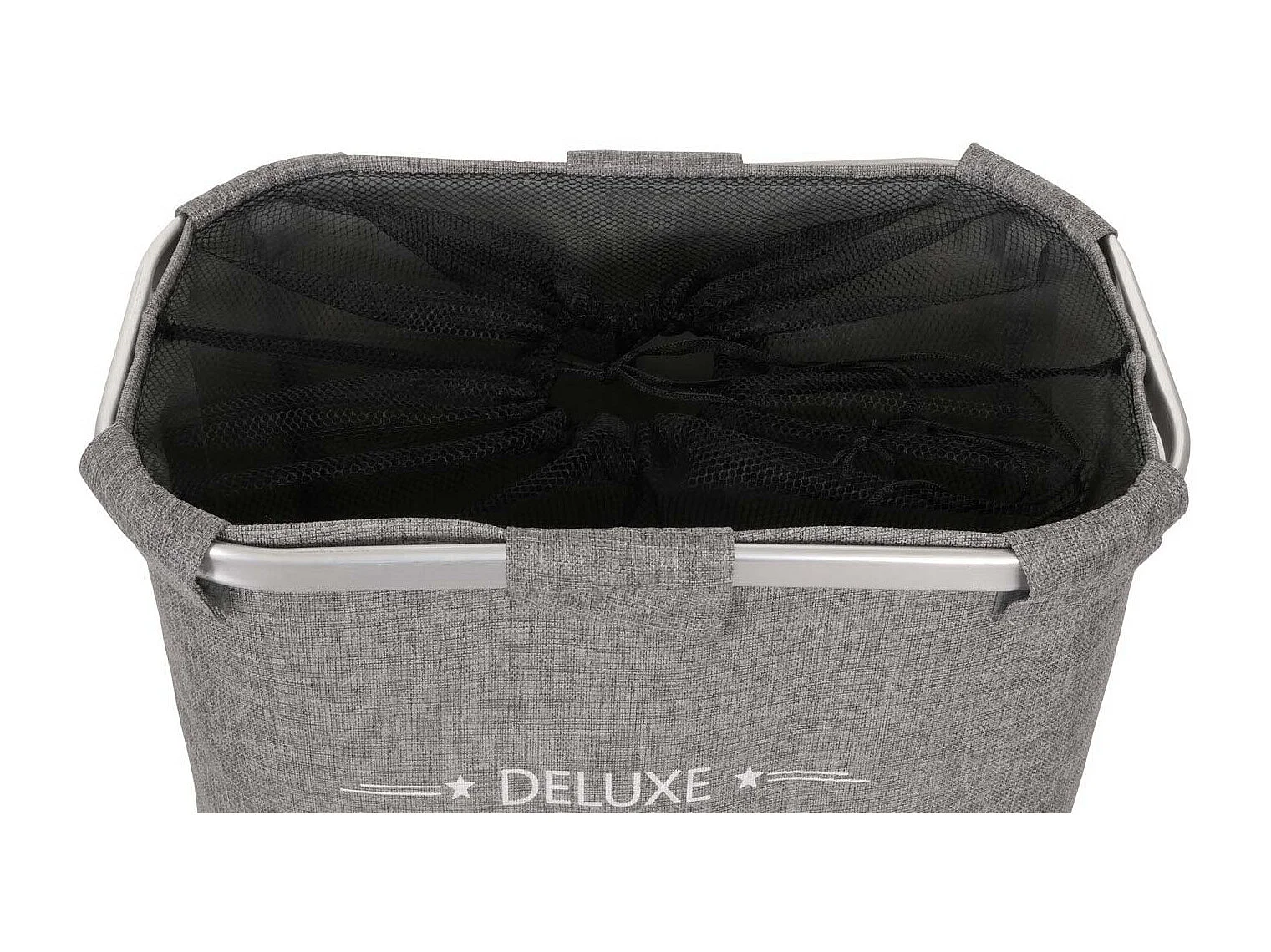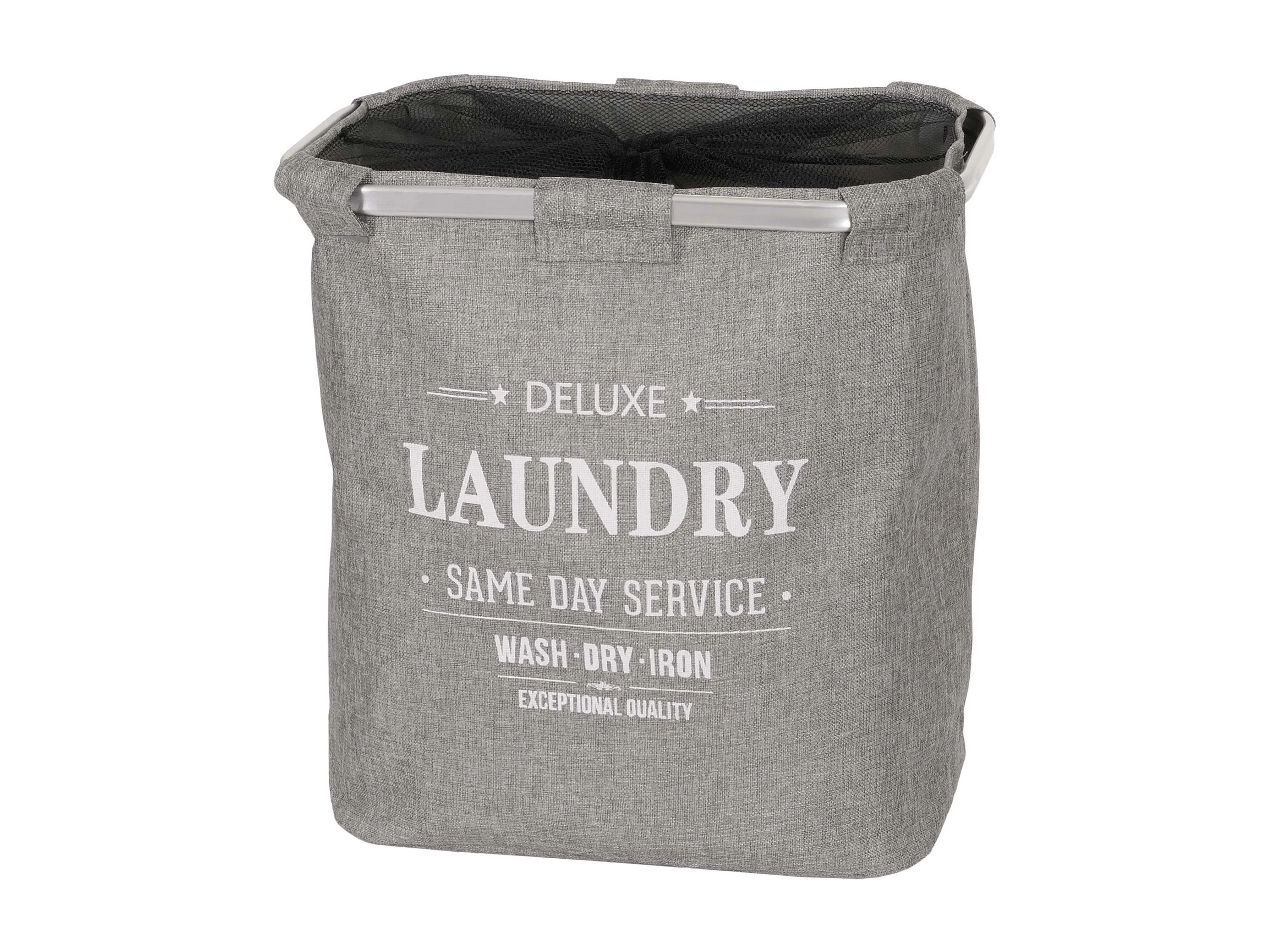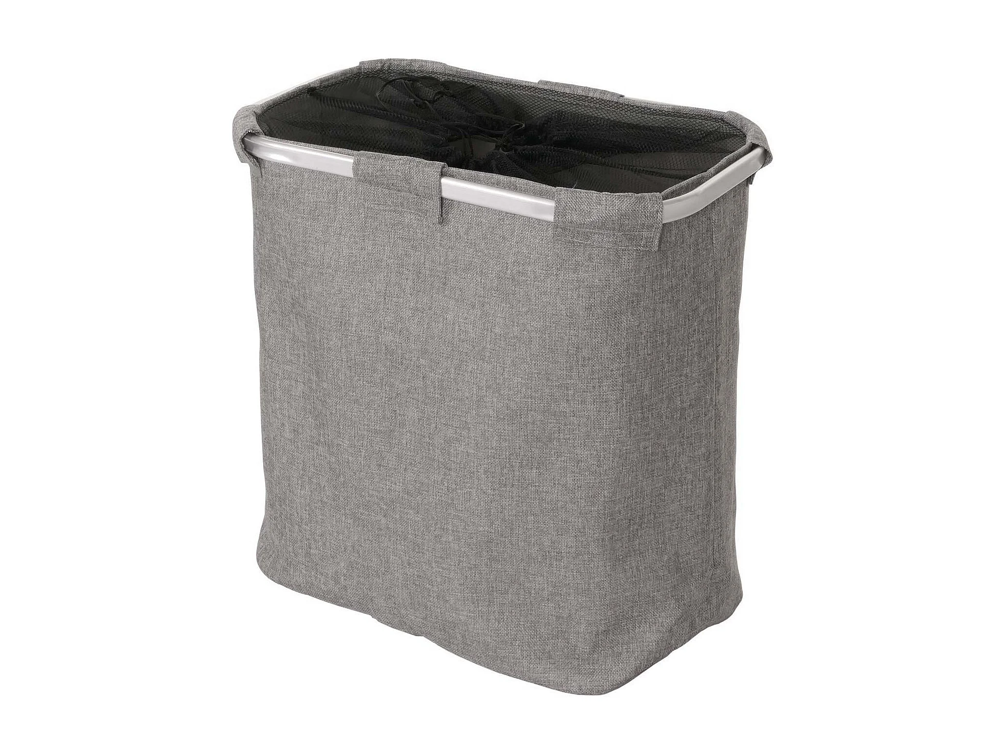 Panier à linge 2 compartiments pliant en tissu gris - BASKET