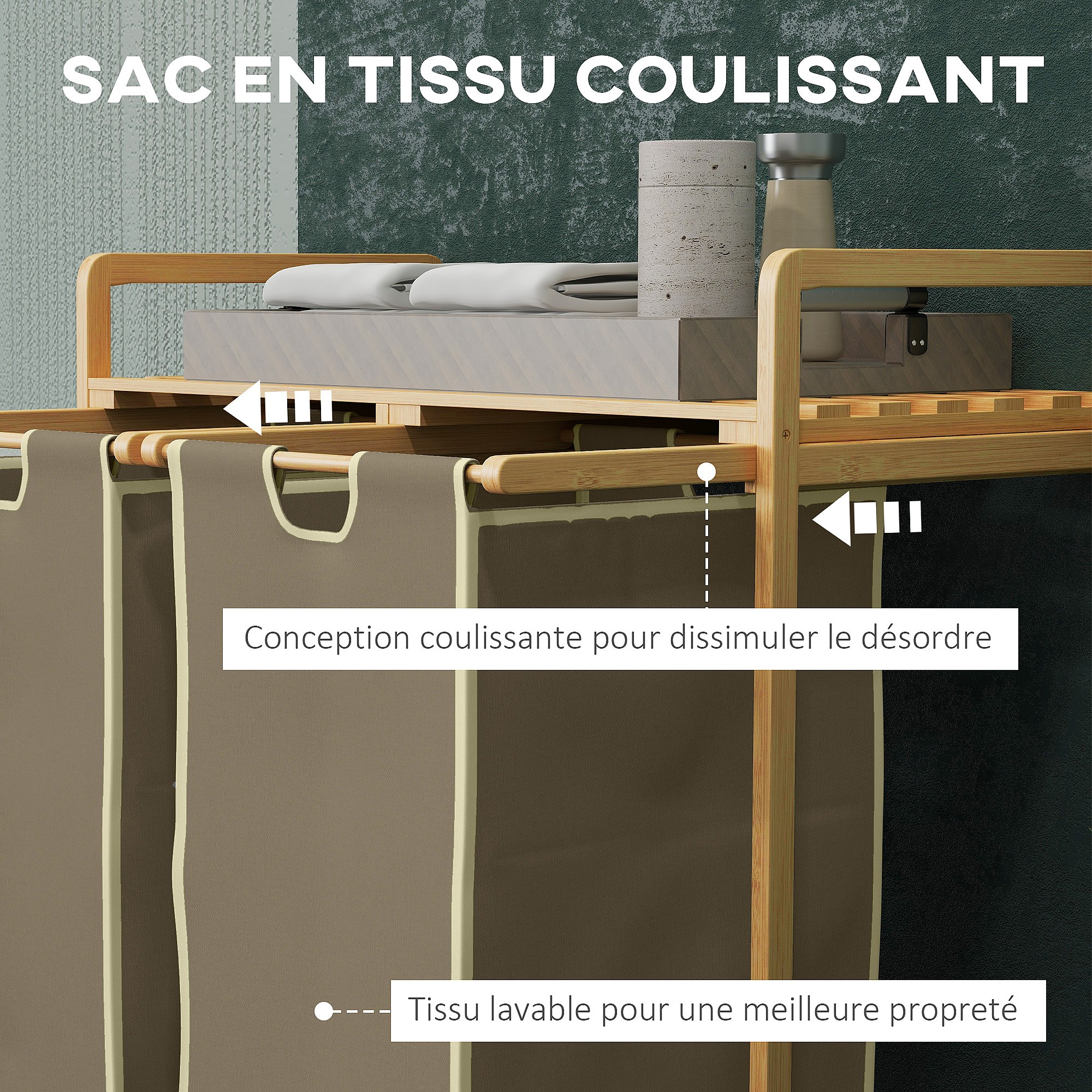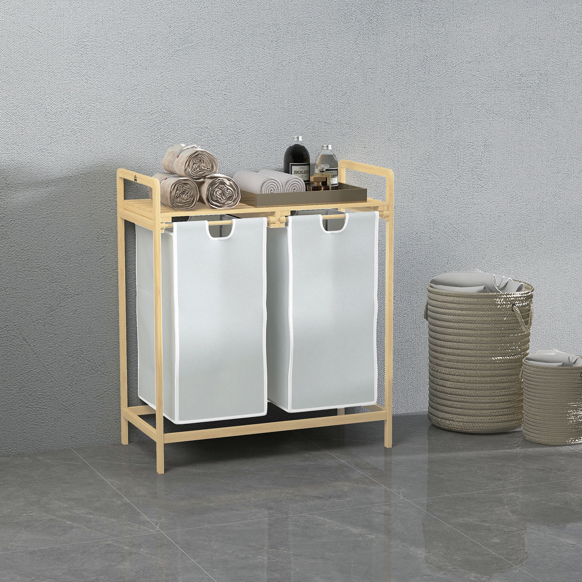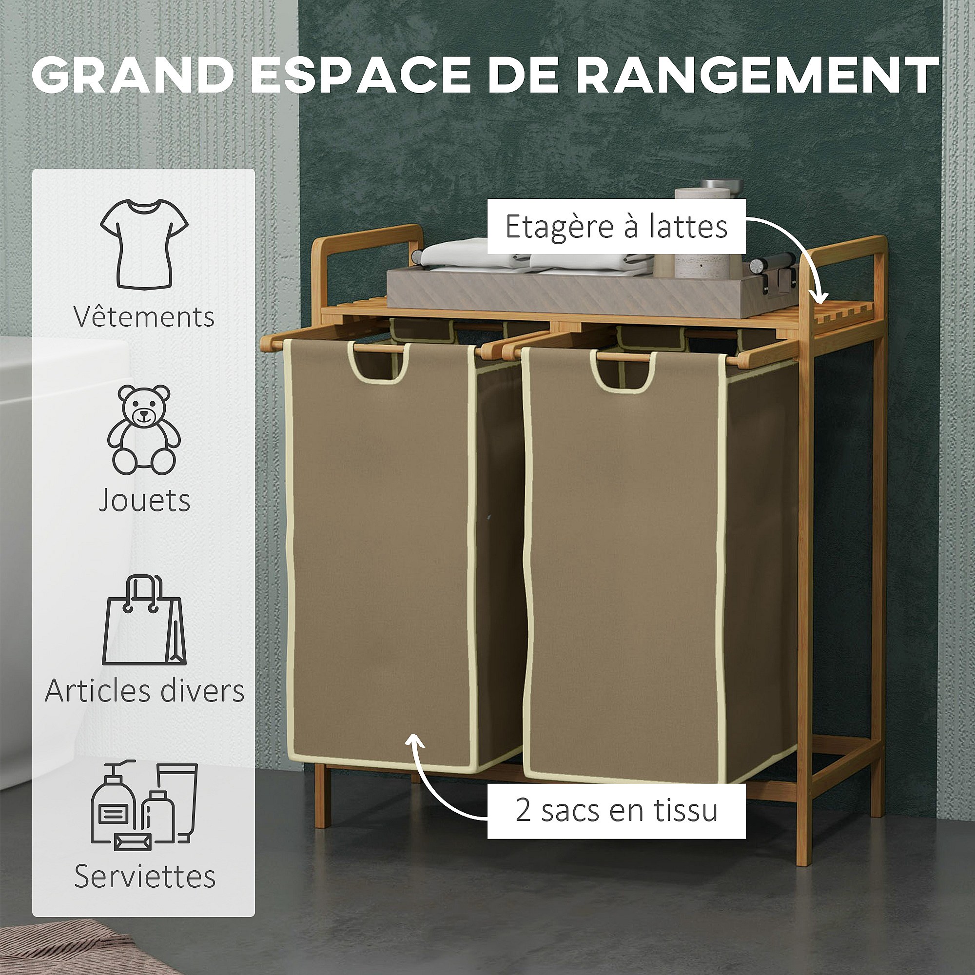 Panier à linge corbeille à linge bambou 2 paniers amovibles crème