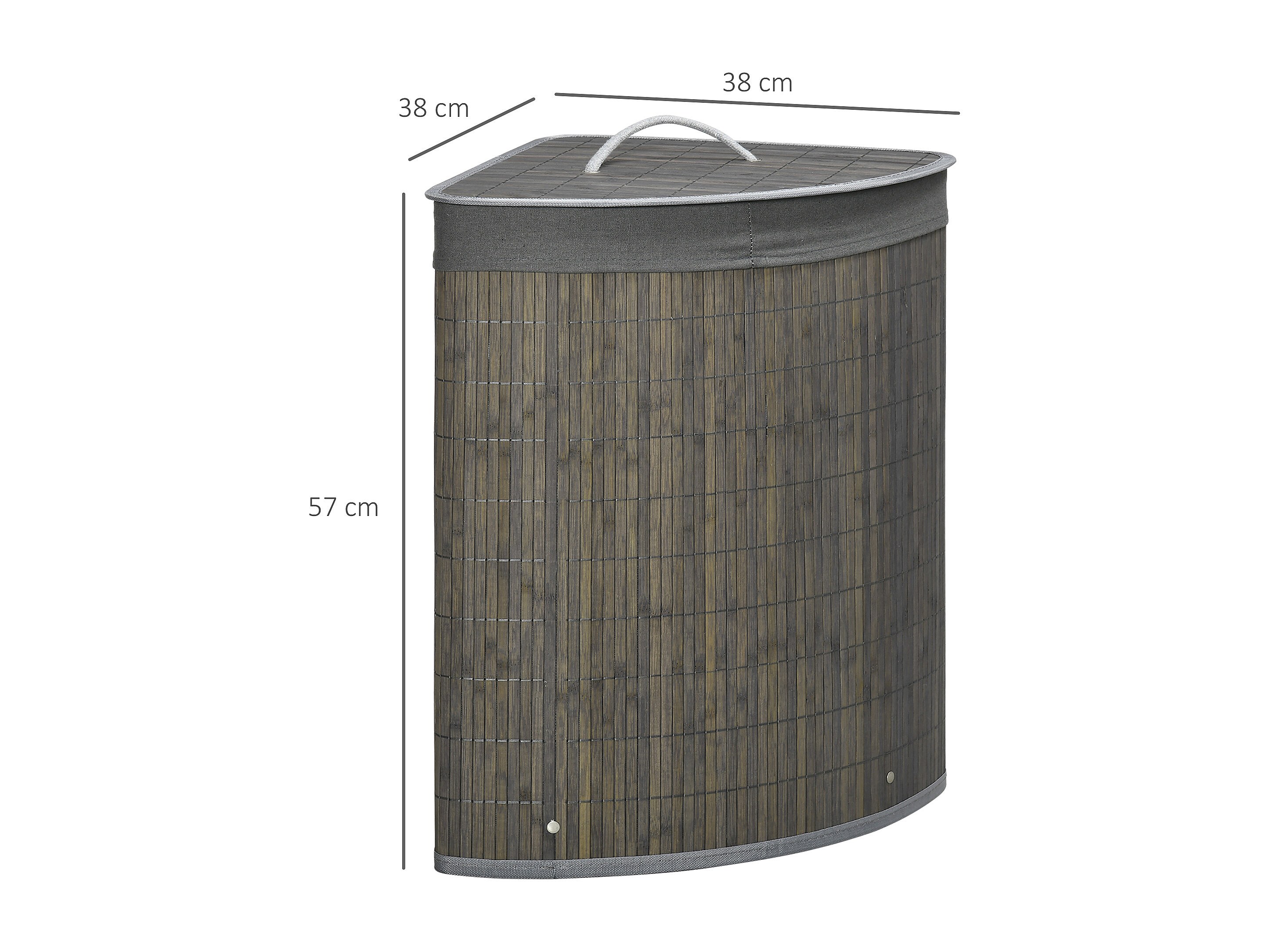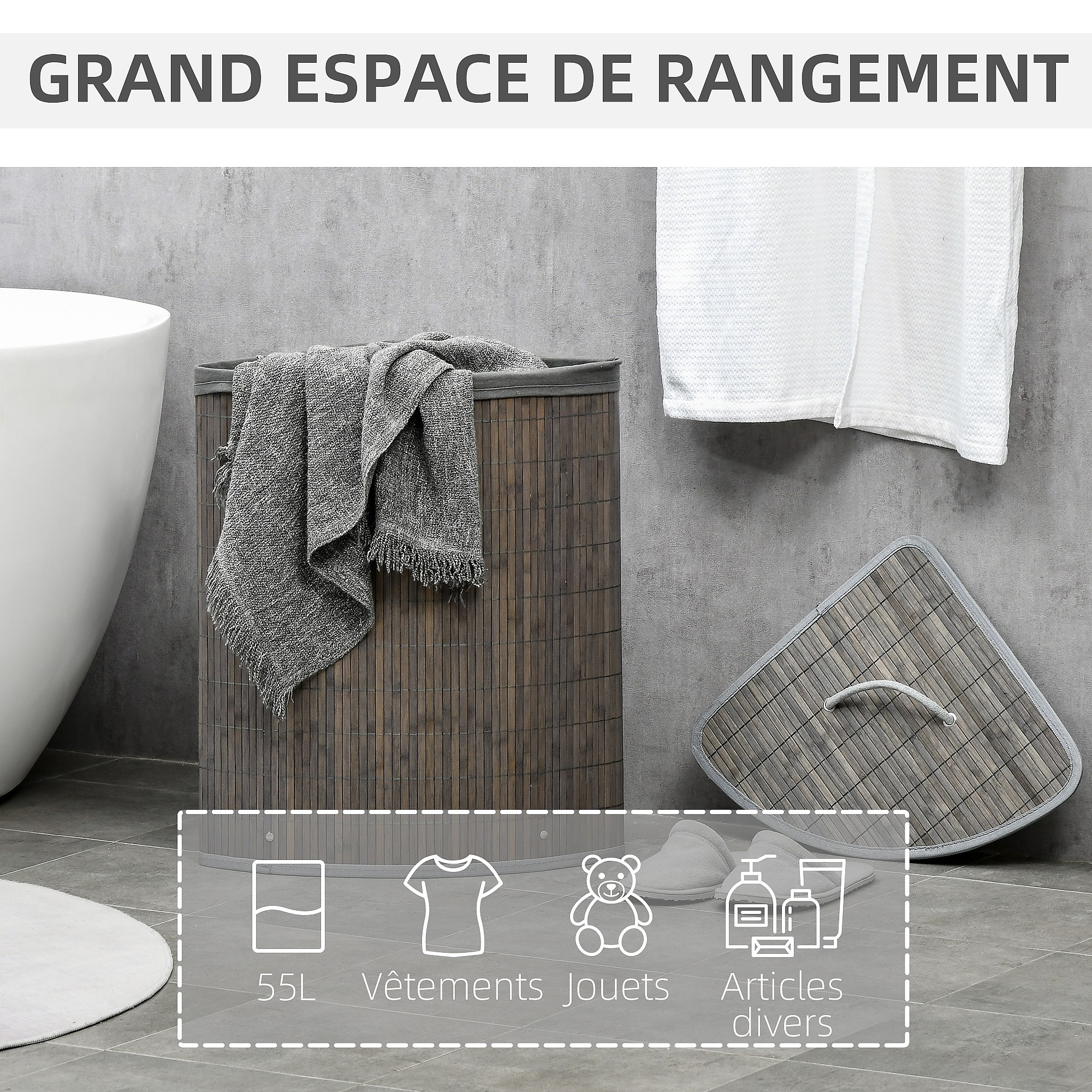 Panier à linge d'angle corbeille à linge bac à linge 55 L couvercle sac amovible poignée bambou tissu gris