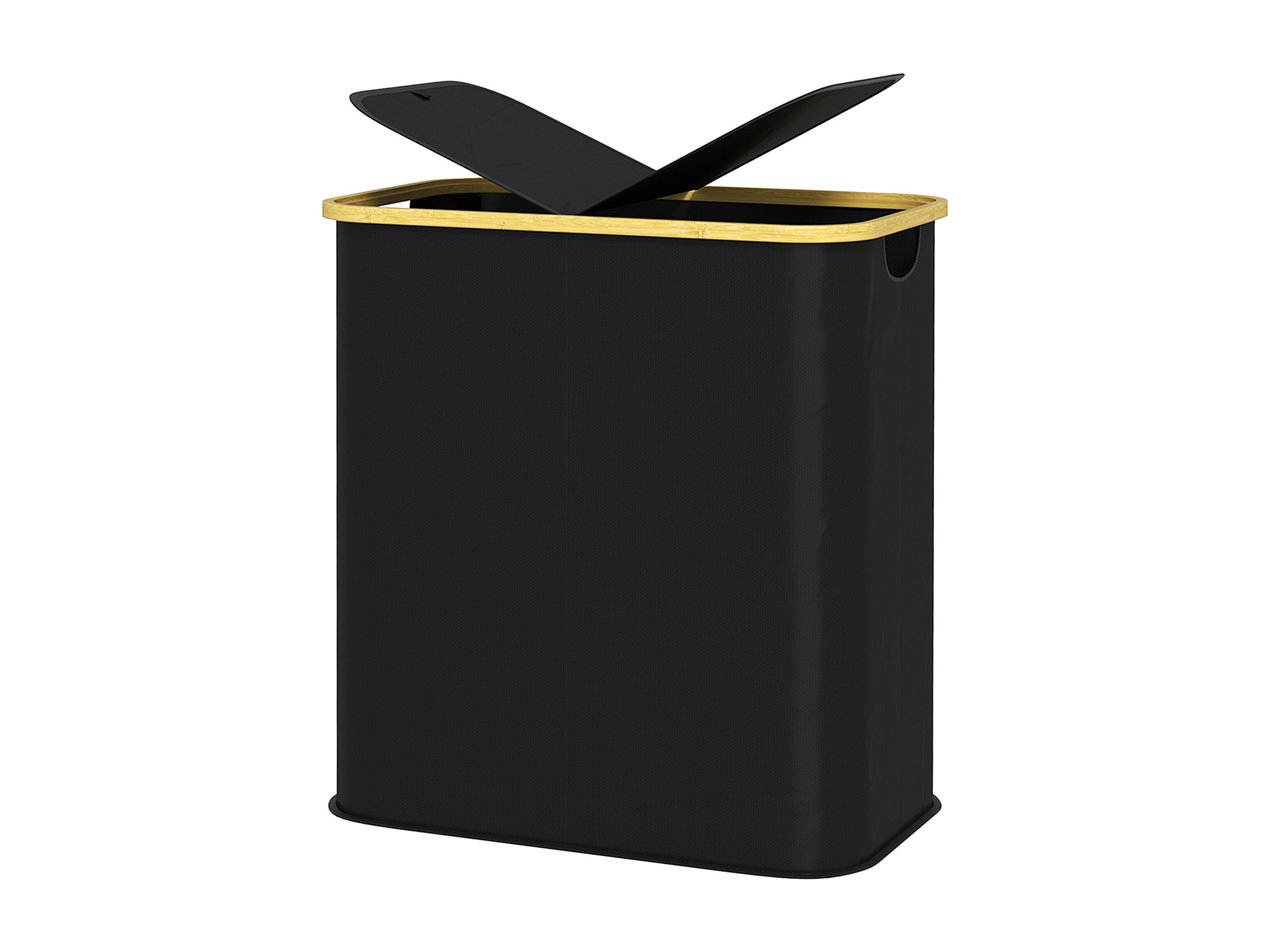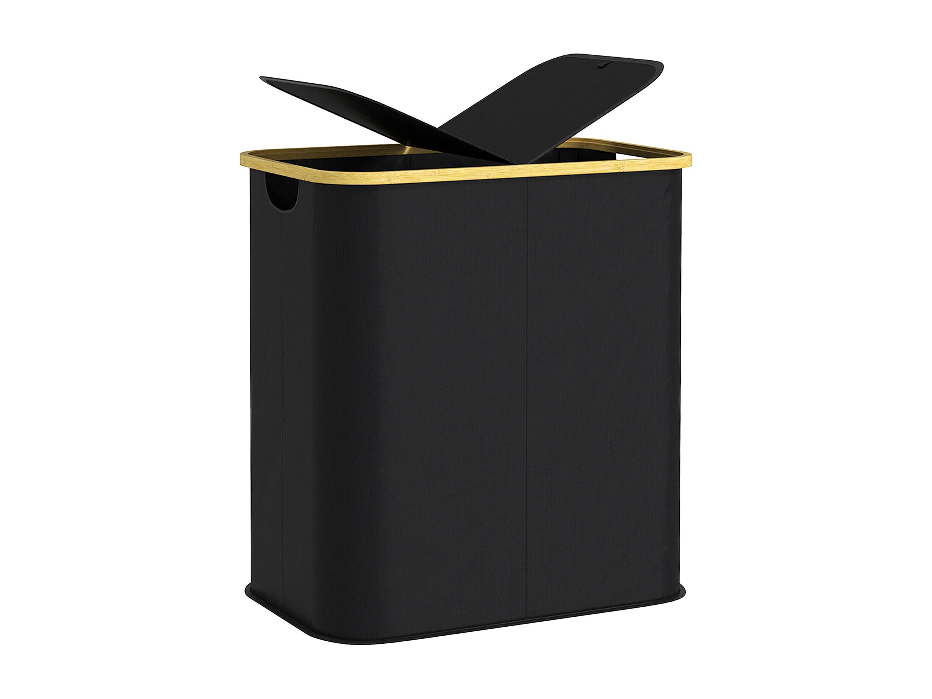 Panier à linge double pliable 80L - corbeille à linge sale avec couvercle et poignées - non tissé noir bambou