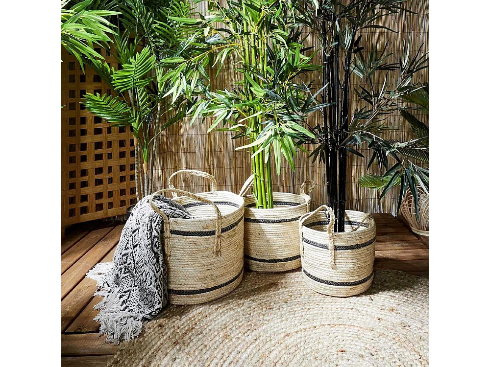 Panier Bicolore Fibre De Mais X3 Marron, Noir