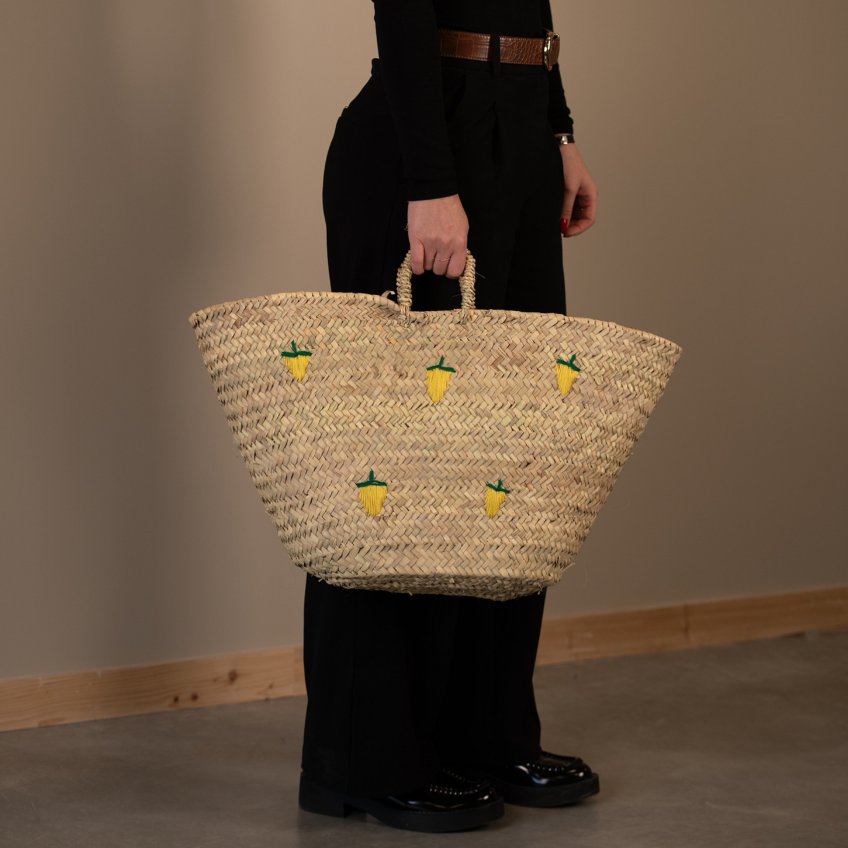 No Name - Panier Avec Cloche D33cm En Jonc De Mer Naturel Et Safran Dune