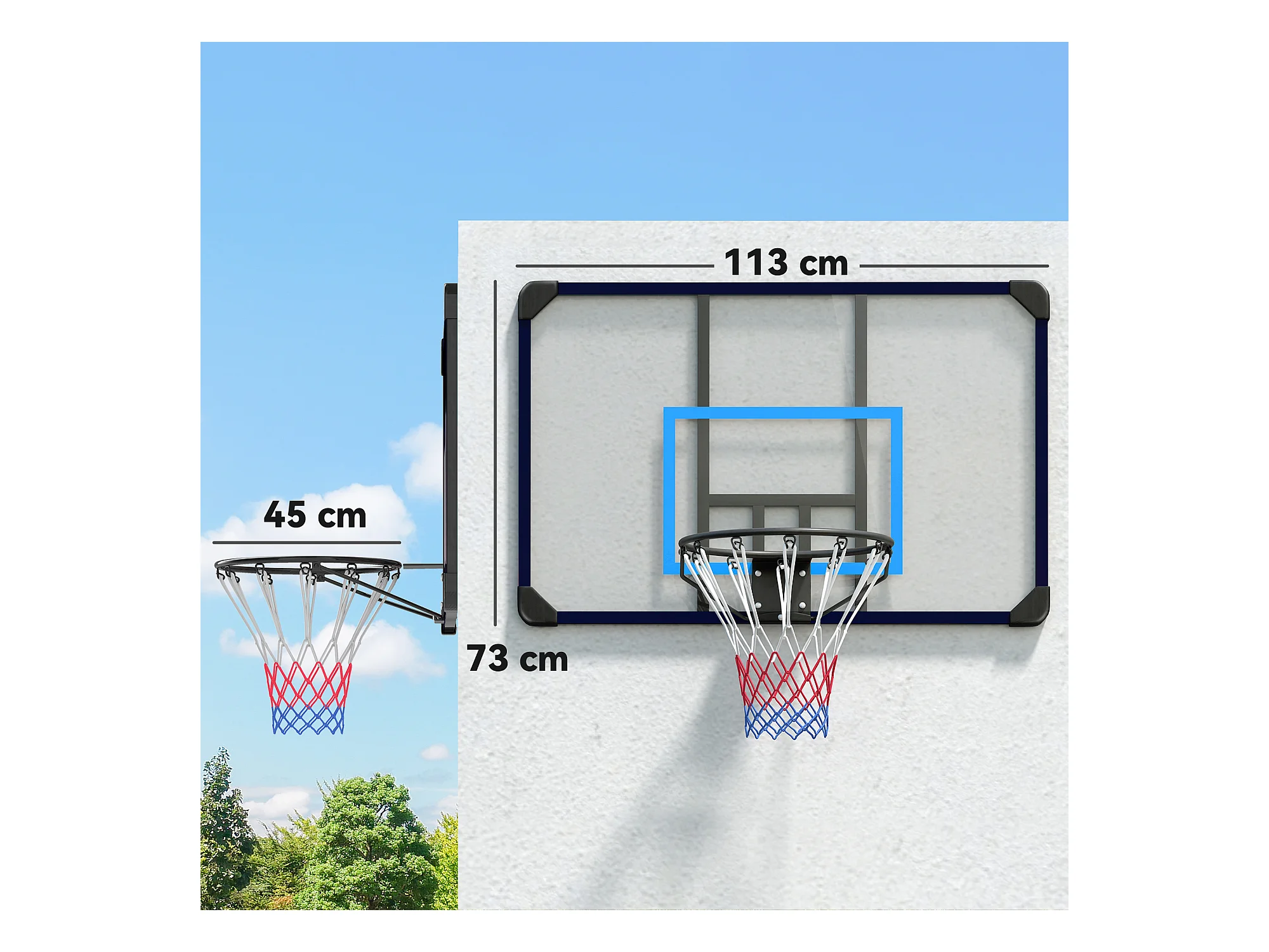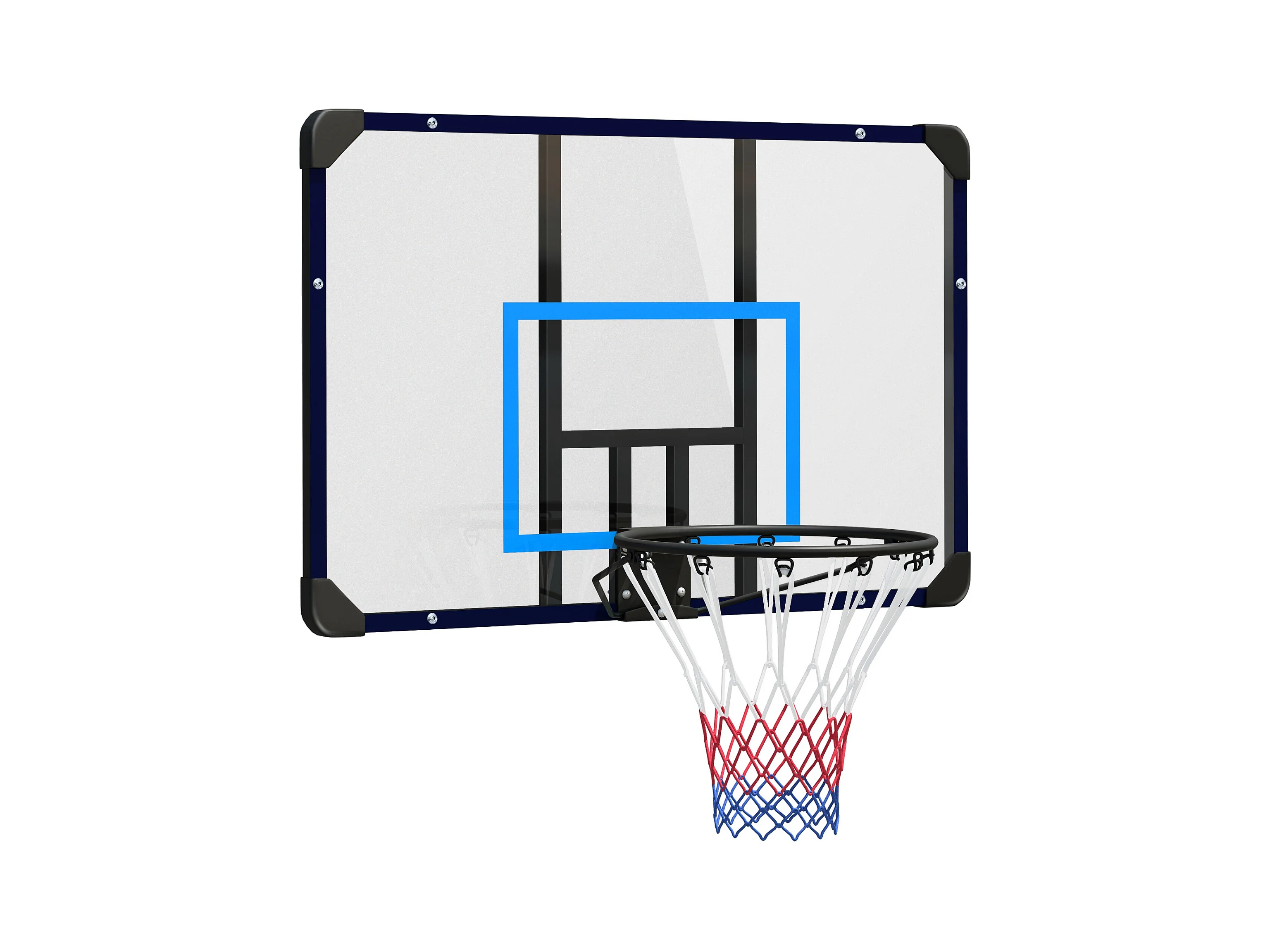 Panier de basket mural, design professionnel, acier, noir avec filet (113x61x73cm)